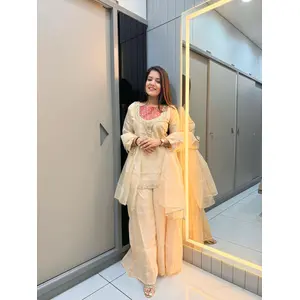 Cream Roman Shimmer Readymade Kurti...
