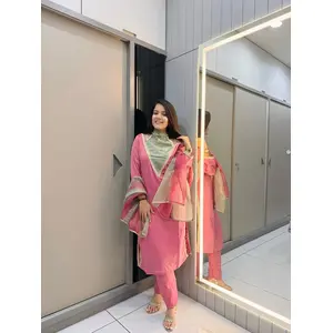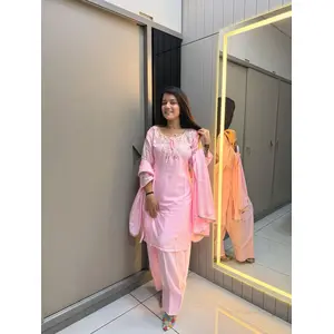 Baby Pink Crape Readymade Kurti Set...