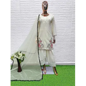 White Crape Readymade Salwar Suit...