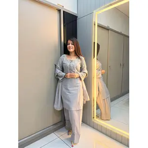 Grey Crape Readymade Kurti Set with...