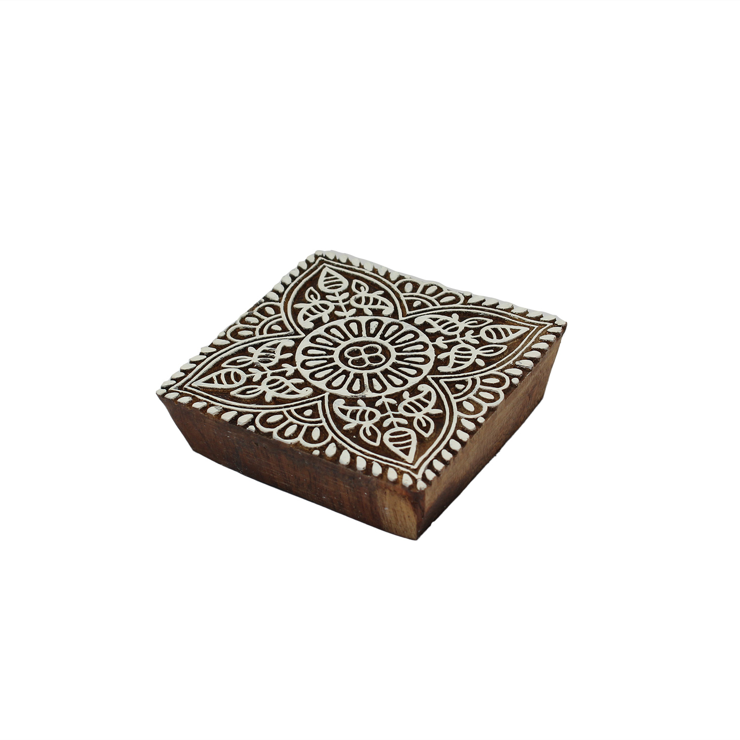 Silkrute Carved Square Patterns | Wooden Block Stamp Print for Textile Printing | DIY Crafts (Pack of 1)