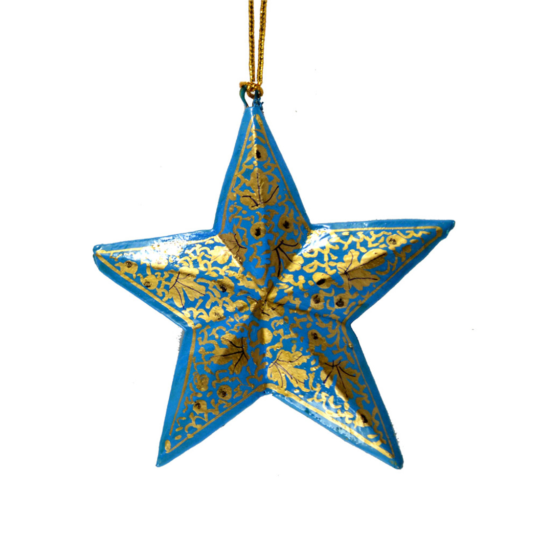A divine set of three celestial star shaped hangings handpainted with floral motifs and made of lacquered papermache to add that festive touch. These magical trinkets have been crafted by Kashmiri artisans of India. Height(inches) 5:4:3. A must for Christmas Decoration