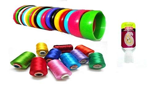 GOELX brings you bangle wrapping learning kit. This combo includes a Set of Multicoloured bangles alongwith Fabric Glue & Shiny Silk Thread - 10 spools .High in Demand for Thread Jewellery Wrapping. A Learning Kit for Jewellery Making and Wrapping. Bangles Set - 3 Style : Bangles Thin 12 Bangles Thin 6 Bangles Kada 2