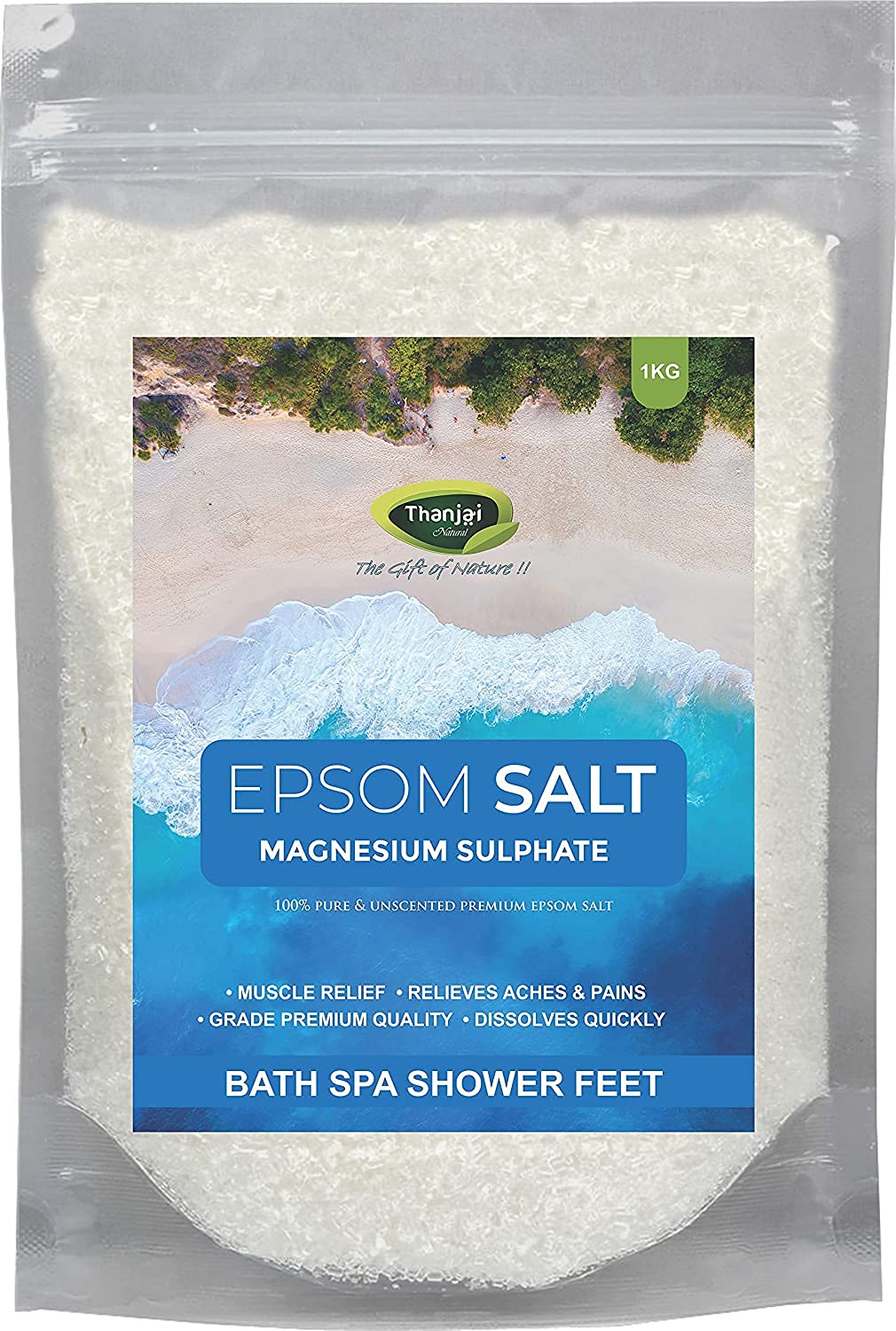 Thanjai Natural Epsom 1kg Bath Salt for Muscle Relief Relieves Aches & Pain Granule Magnesium Sulphate) for Plants GardeningWater Soluble FertilizerSoil Manure