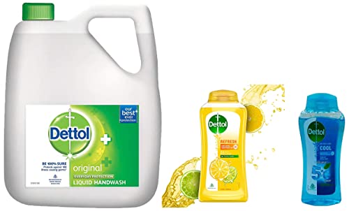 Dettol Original Germ Protection Handwash Liquid Soap Refill 5LBe 100% sure to protect your skin from 100 illness-causing germs and bacteria. Use Dettol's Original Germ Protection Handwash Liquid Soap pH balanced formula every day and keep your hands hygienically clean and refreshed. This hand wash provides soft and rich lather leaving behind clean hands and mild pine fragrance. The trusted germ-protection modus operandi acts like a barrier between your hands and a wide range of unseen germs. The soap-free formula with glycerin makes sure to keep your skin moisturised while the plant derived cleansers help ensure thorough cleaning. Dettol handwash also contains more than 85% naturally derived ingredients with no TCC & Triclosan giving another healthy reason for hand washing whenever in need. Wash hands properly with Dettol and help keep your family healthy! Safety Information: Keep out of reach of children unless under adult supervision. Avoid direct contact with eyes. For external use. In case of contact with eyes rinse immediately with plenty of water. If persistent irritation occurs seek medical attention.Dettol Body Wash and Shower Gel for Women and Men Refresh - 250ml | Soap-Free Bodywash | 12h Odour ProtectionDettol Hygiene Body wash Refresh combines Dettolâs trusted germ protection with refreshing citrus fragrance and leaves your skin feeling fresh.Dettol Body Wash and Shower Gel for Women and Men Cool - 250ml | Soap-Free Bodywash | 12h Odour ProtectionDettol Hygiene Body wash Cool combines Dettolâs trusted germ protection with crispy menthol and leaves your skin feeling fresh.