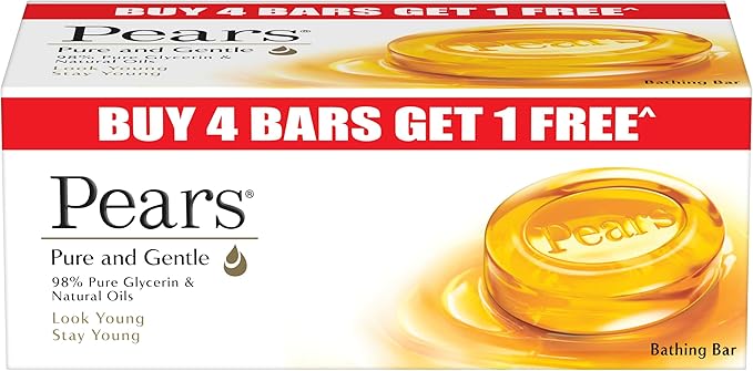 Pears Pure and Gentle Bathing Bar, 125g (Buy 4 Get 1 Free)
