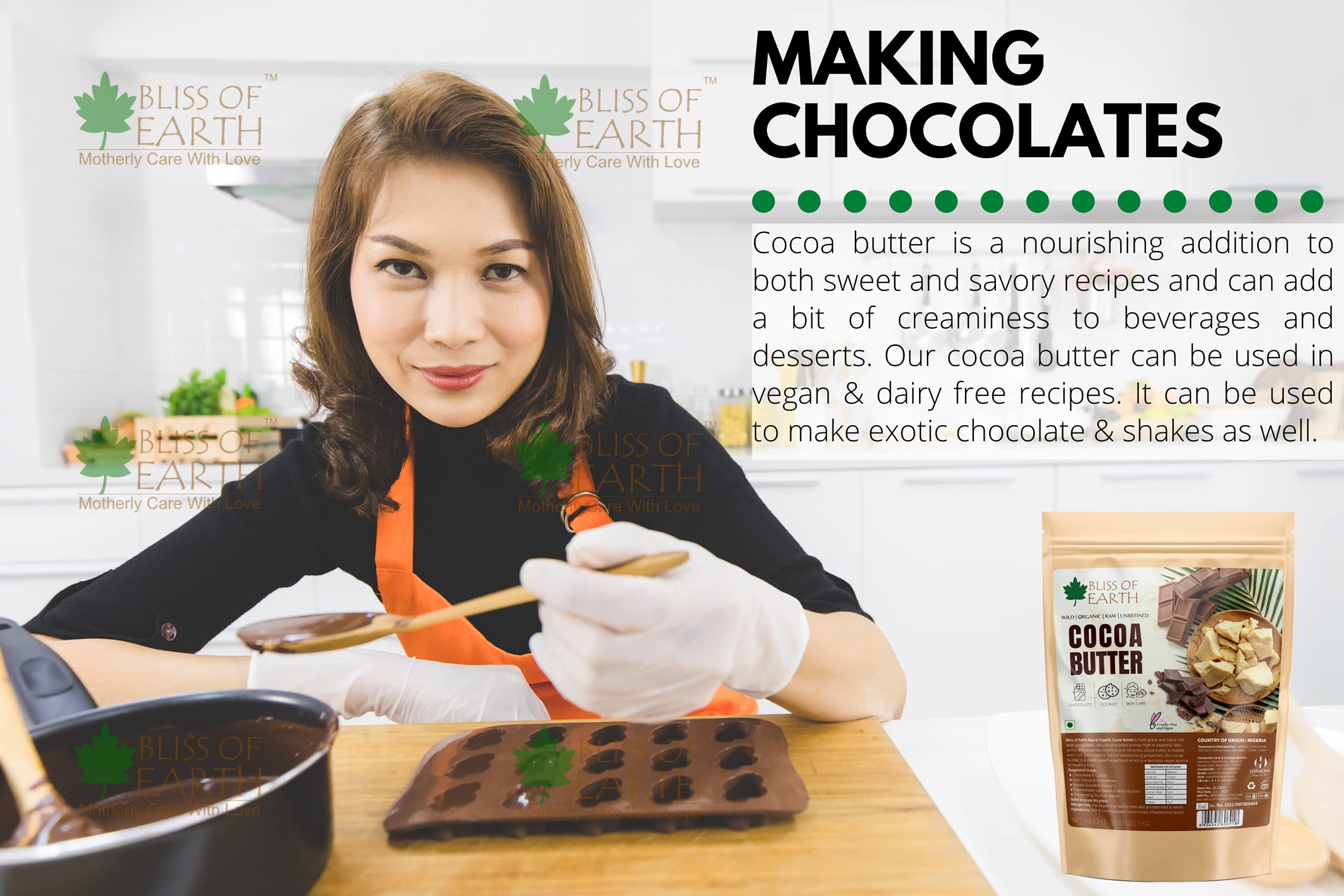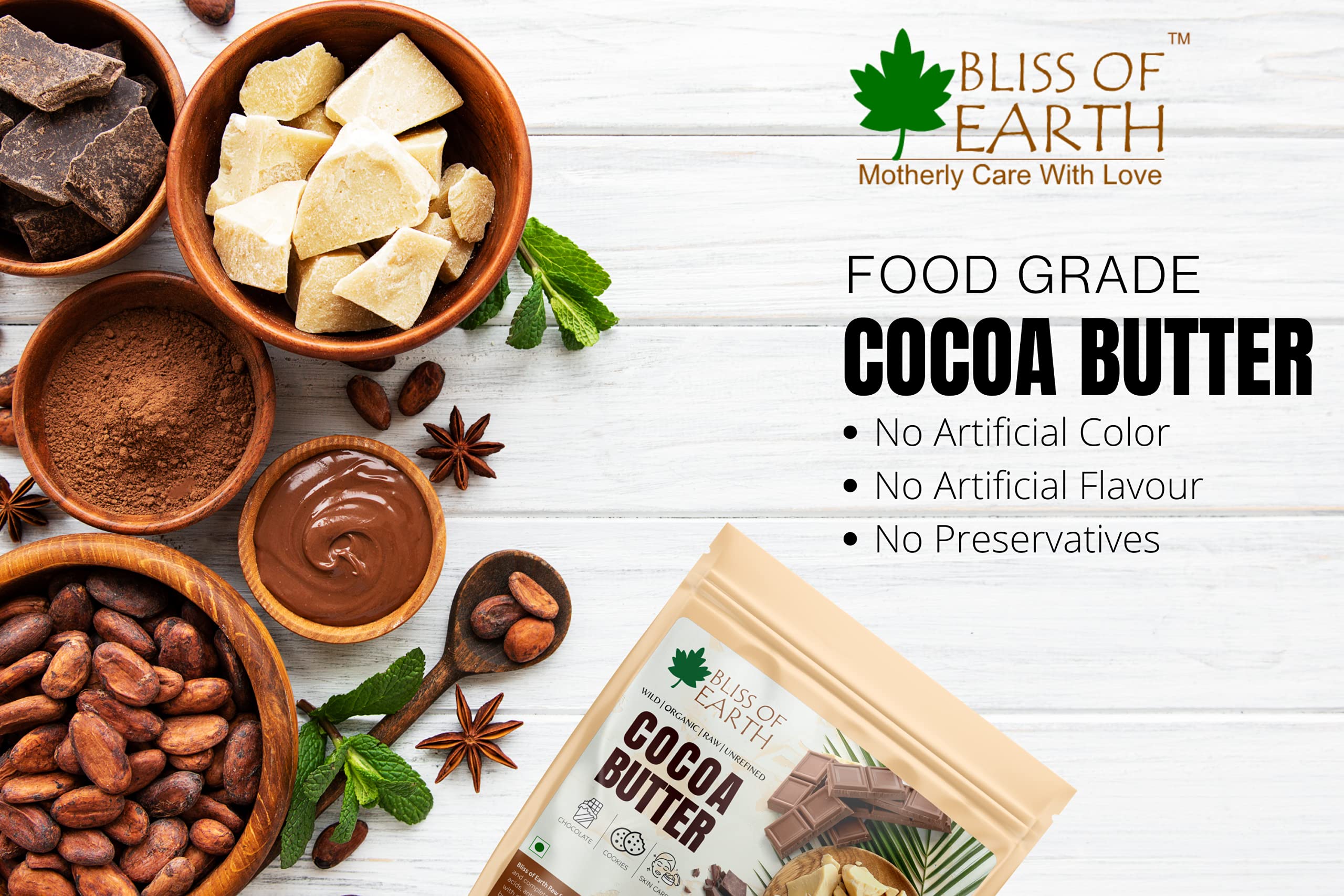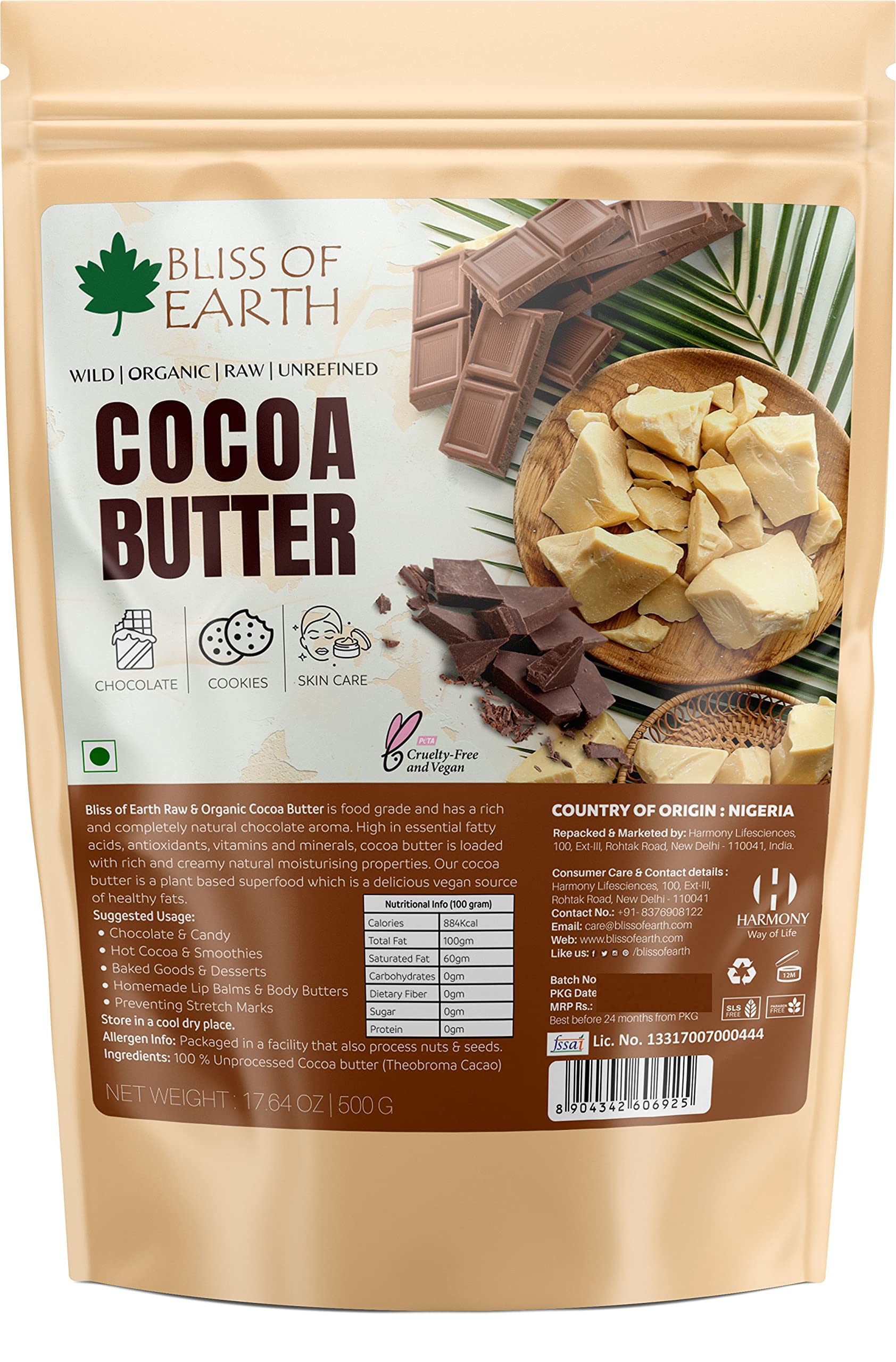 Bliss of Earth Cocoa Butter for Chocolate Making Food Grade Raw & Organic for Hair Skin & Stretch Marks 2X 500g