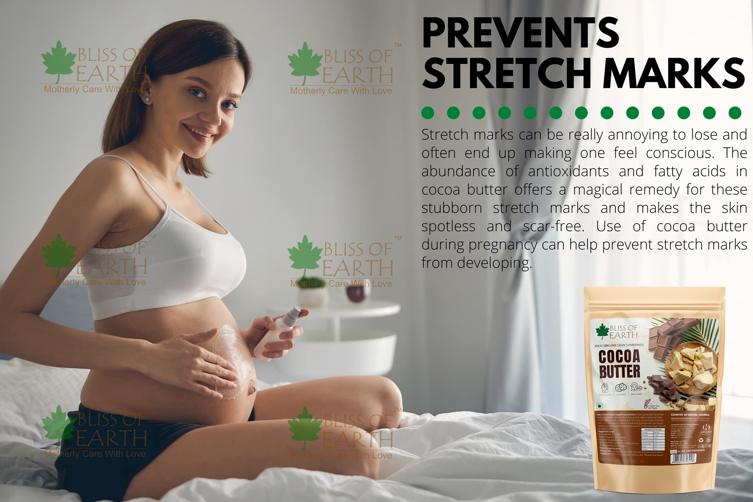• Cocoa butter can help prevent formation of stretch marks. Start using our cocoa butter during your pregnancy to keep your belly stretch marks free