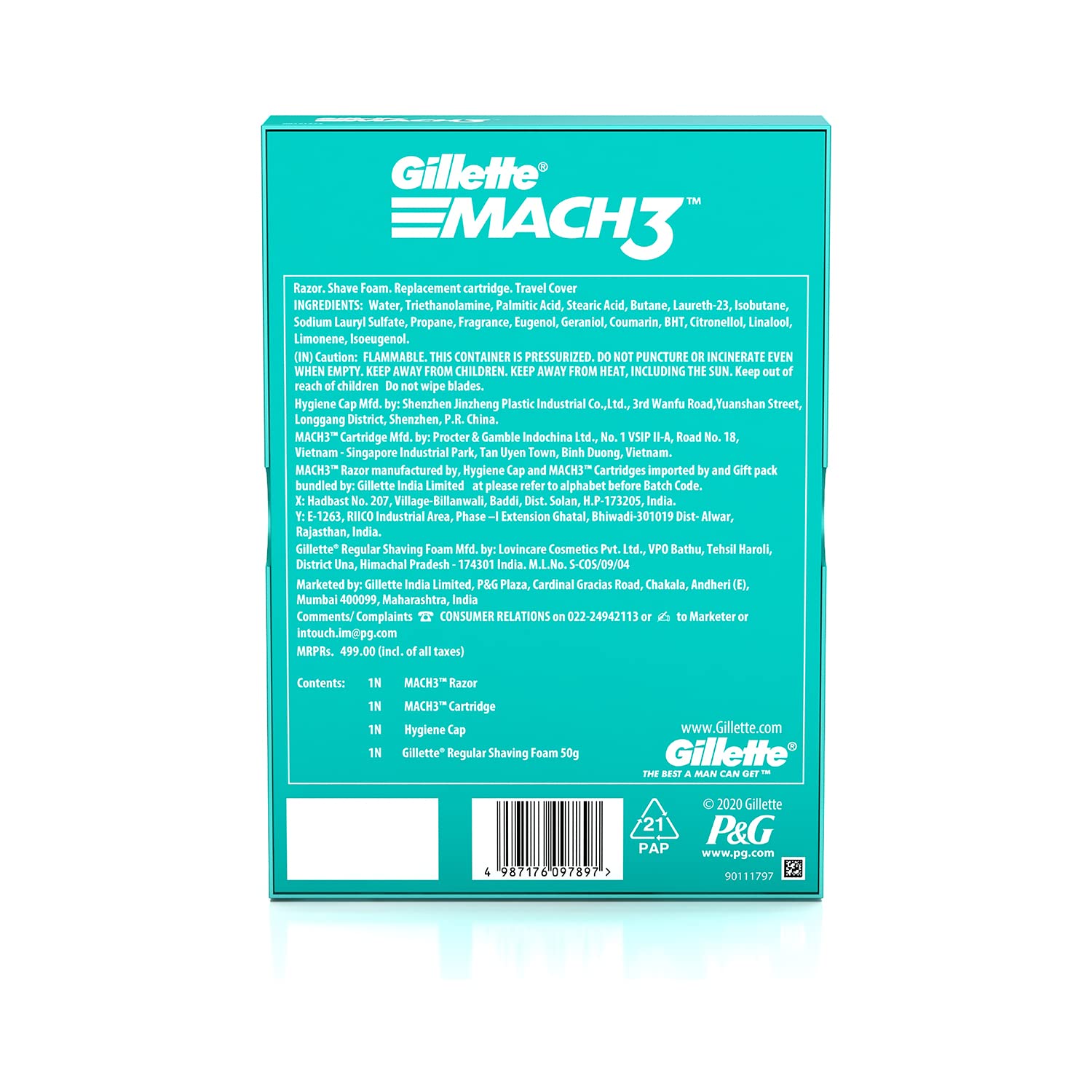 Gillette MACH3 Limited Edition Travel PackMach3 Gift Pack with Travel Bag Mach3's 3 blade technology offers a comfortable shave along with the longevity that comes only with exchangeable blades. Its Comfort Guard includes 5 Microfins to bring you a close comfortable shave while the Indicator Lubrication Strip fades to white to show when you are no longer getting an optimal shave from your razor blade. A highly trusted choice the MACH3 continues to give men around the world a great start to their day.Gillette Mach 3 Sensitive Manual Shaving Razor Blades - 2s Pack (Cartridge)Gillette MACH3 Sensitive blades are suitable for sensitive skin. MACH3 Sensitive has high definition spring blades that continuously adapt to the skin a microfin guard that helps flatten and prepare skin and an enhanced lubricating strip (vs. MACH3) for great glide. Gillette Mach3 Sensitive Blades Discover Gillette's best 3-bladed technology The Mach3 Sensitive is the first 3-bladed system razor specifically designed for sensitive skin. 3 Blades The 3 spring-mounted blades adjust to different levels of shaving pressure and skin variations to contribute to a close and comfortable shave. MicroFins The skin guard is comprised of soft microfins to help to stretch the skin ahead of the first blade LubraStrips The lubrastrip is enriched with Aloe Vera and delivers more water soluble lubricants to the skin for incredible glide