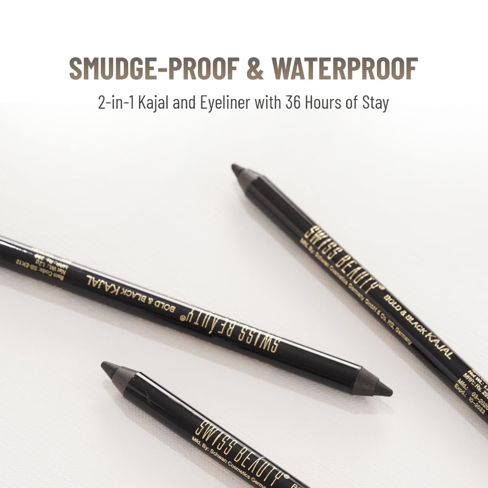 Swiss Beauty Bold and Black Kajal is a multi-functional product that can be used both as kajal and eyeliner. This is specially designed to provide a bold and dramatic look giving your eyes a stunning and captivating appearance. The intense black pigment of the kajal is perfect for creating bold lines and defining your eyes with precision. With its waterproof transfer-proof and smudge-proof formula the kajal stays for up to 36 hours. With its smooth texture and glide-on formula it is easy to apply. So whether you're looking to create a bold and edgy look or just want to add a touch of drama to your everyday makeup our Bold and Black Kajal is the perfect addition to your makeup kit. It comes in sleek and portable packaging making it easy to carry with you for touch-ups throughout the day.