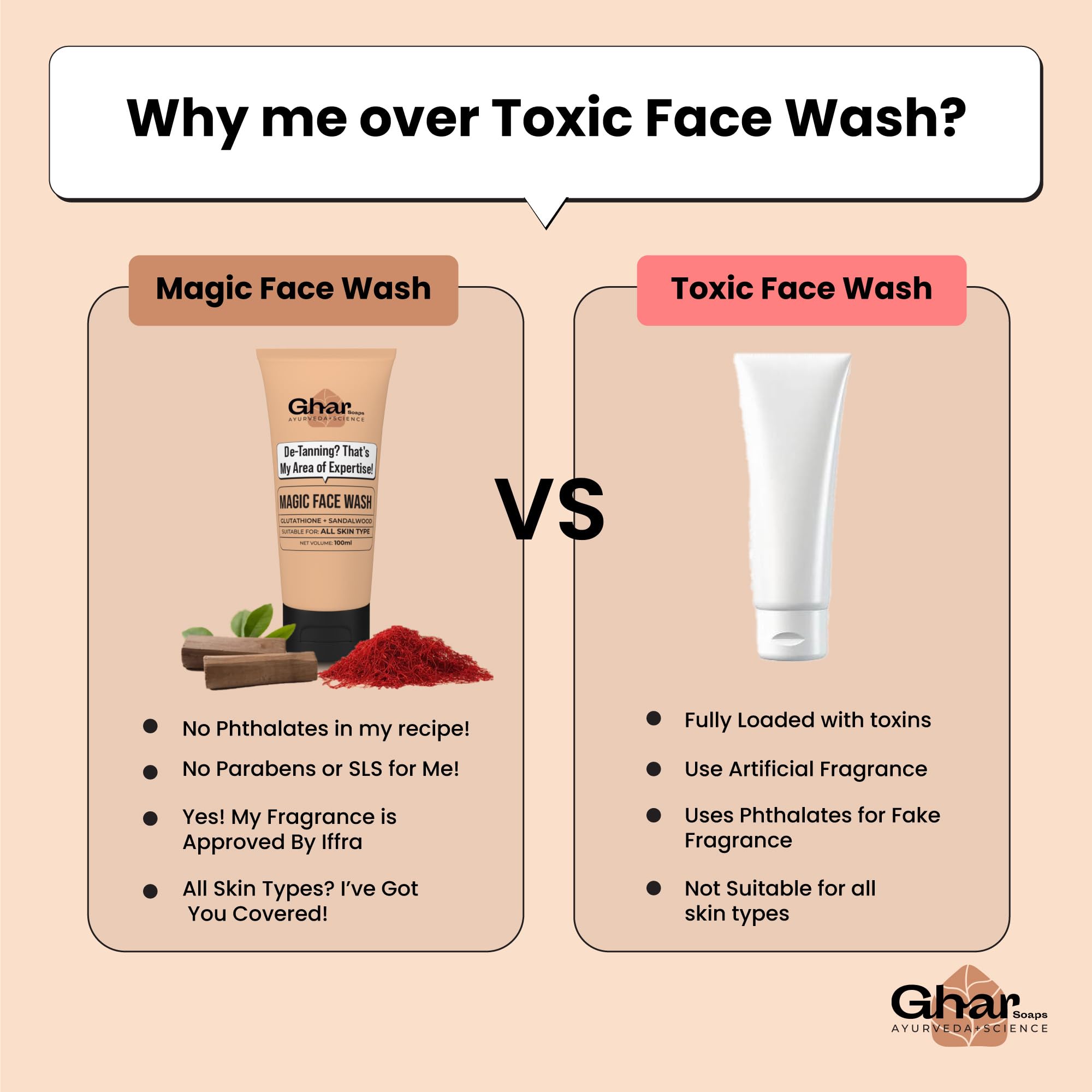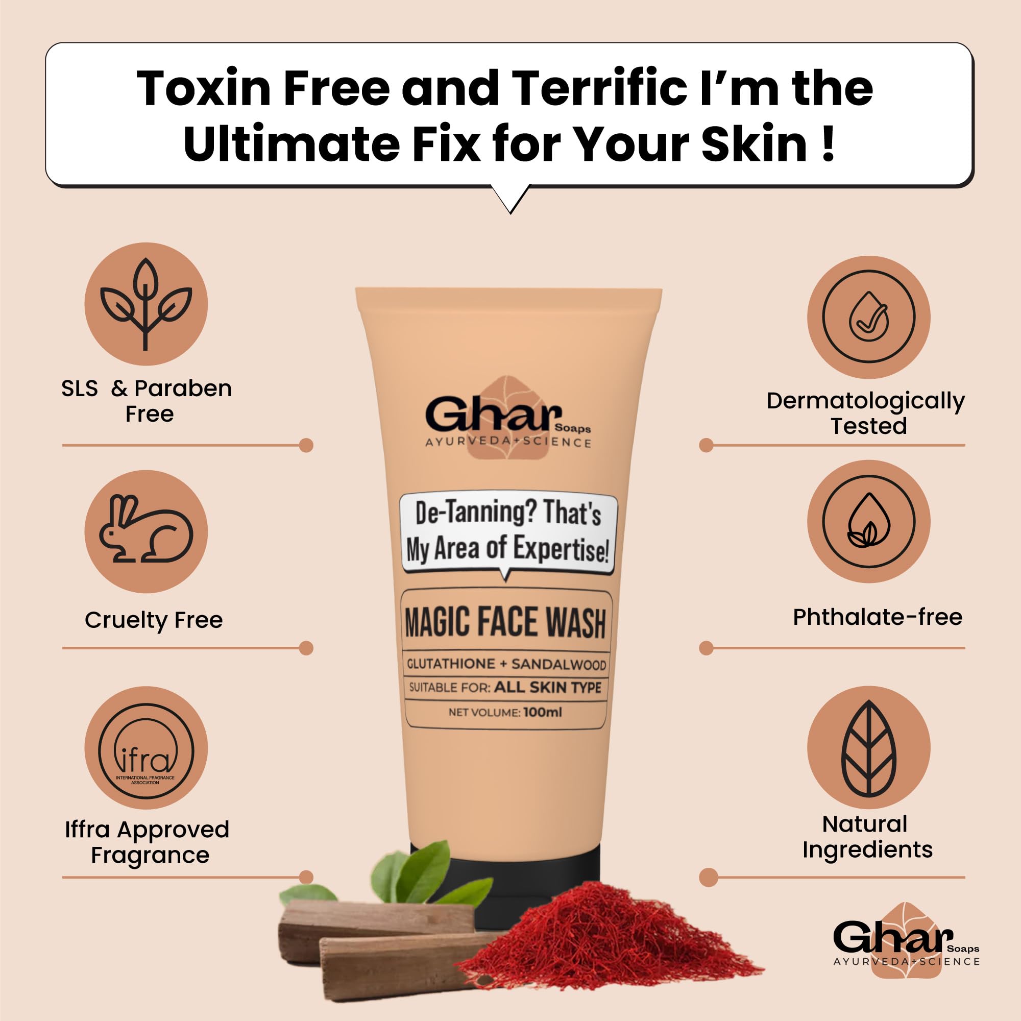 HomeBeautyFace CareCleansersFace WashGhar Soaps Magic De-Tan Face wash I With SandalwoodSaffron & Glutathione | Tan Removal Brightening and Glowing Skin I For All Skin Type Skin I For Men & Women | 100ml