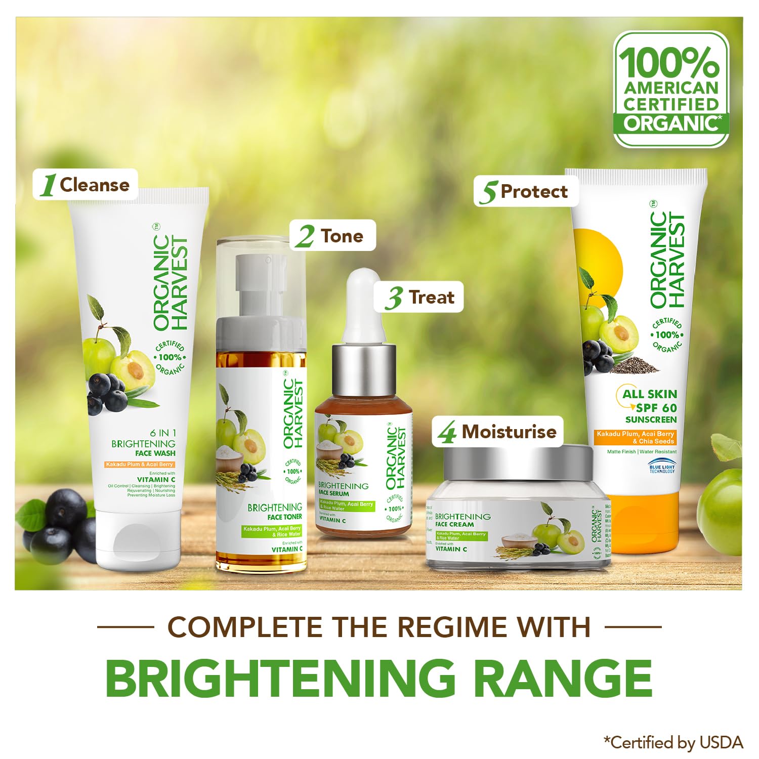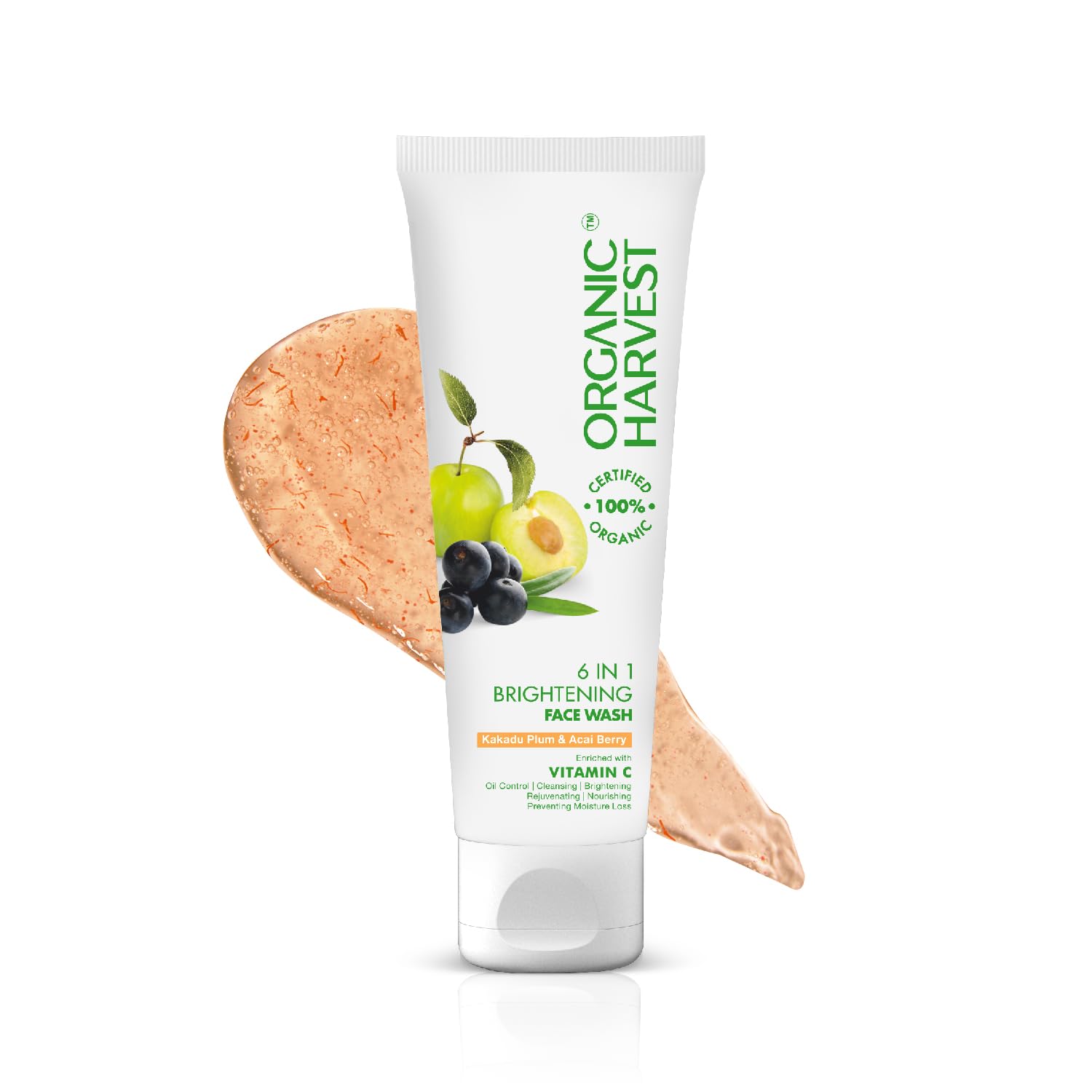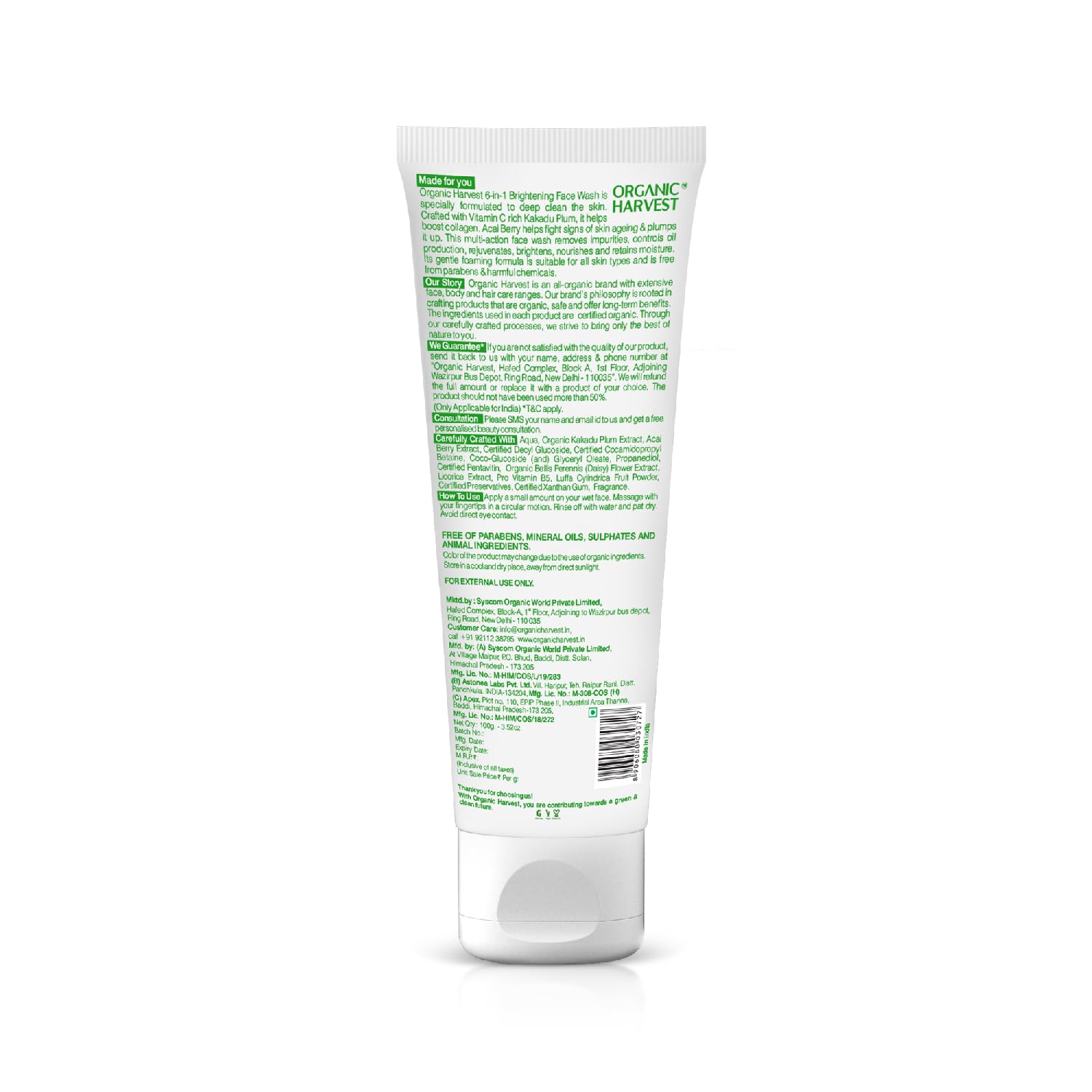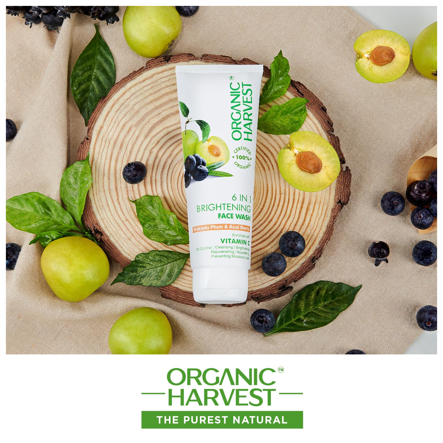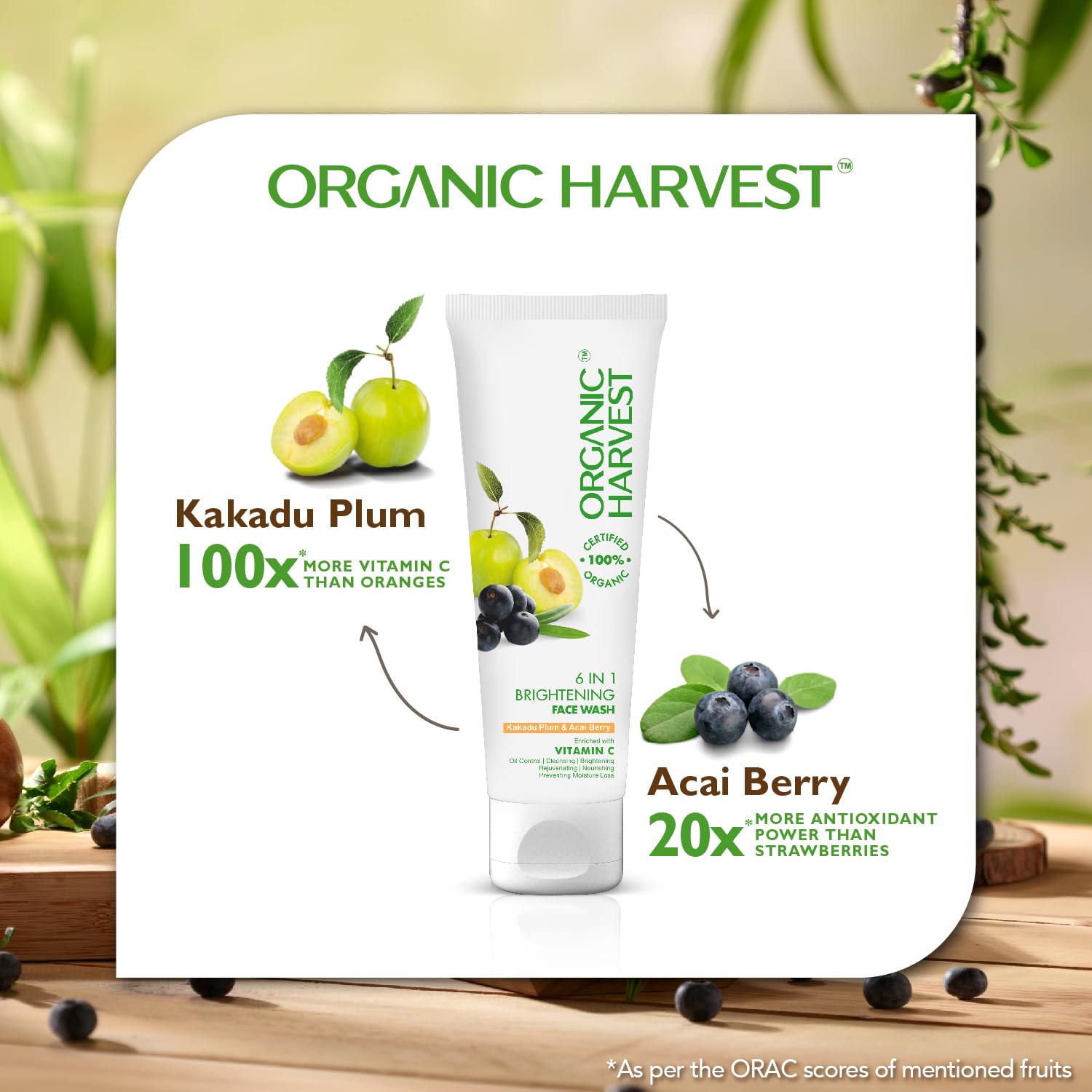Organic Harvest 6-in-1 Brightening Face Wash: Kakadu Plum & Acai Berry | Daily Use Facewash For Men & Women | 100% American Certified Organic | Sulphate & Paraben-Free 100gm