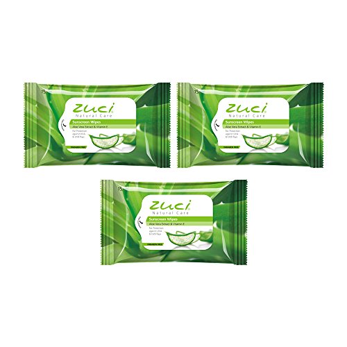 Zuci Sunscreen Wipes with Aloe and Vitamin E (Pack of 3 = 45 wipes (15 wipes per pack)) will keep you safe and feeling fresh. 3-in-1 Sunscreen/Refreshing/Moisturizing Perfect for people on the go athletes children playing outside etc.