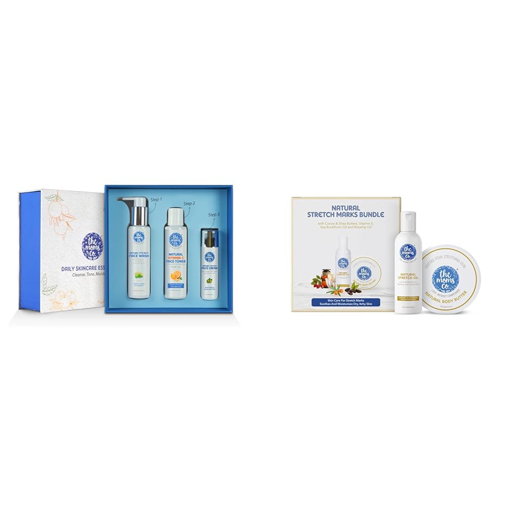 HomeBeautyFace CareSkincare Kits & CombosThe Moms Co Daily Skincare Essentials Box l All Skin Types. All Natural Complete Care Solution for Stretch Marks for Women| Natural Stretch Mark Oil (100ml) and Natural Body Butter (100g)