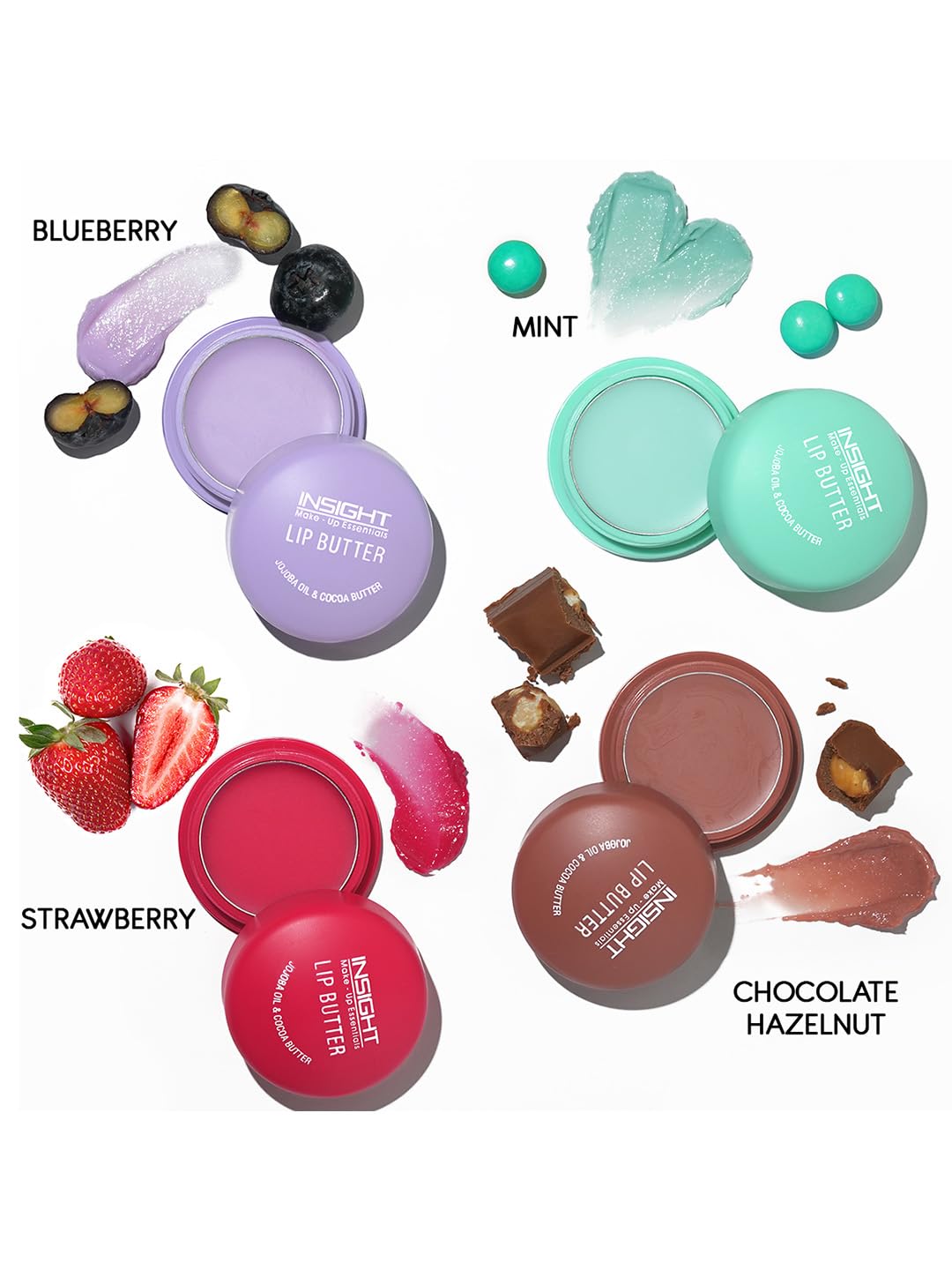 A BUTTERY LIP TREAT WHICH IS FRESHLY MADE WITH ORANGE PEEL OIL JOJOBA OIL ROSEHIP OIL VITAMIN E COCOA BUTTER AND WHICH MAKES IT 100% NATURAL. THIS ULTRA NOURISHING LIP BUTTER REDUCES PIGMENTATION AND PROMOTES REPAIR AND RESTORATION OF YOUR LIPS WHILE PROVIDING MOISTURE. IT HELPS RETURN THE NATURAL PINK COLOUR TO YOUR LIPS PREVENTS DISCOLOURATION AND KEEPS THEM FEELING SOFT AND PLUMP. THIS LIP BALM CONTAINS NO HARMFUL CHEMICALS. AVAILABLE IN 4 DISTINCT FLAVOURS I.E. MINT CHOCOLATE HAZELNUT BLUEBERRY & STRAWBERRY.