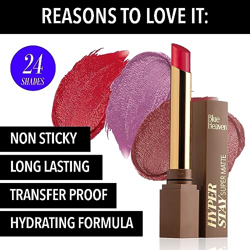 HomeBeautyLipsLipstickBlue Heaven Hyperstay Super Matte Lipstick, Hydrating Formula with Matte Finish, Long lasting & Transfer Proof Lipsticks for women, Molten Latte - 727, 2.2gm