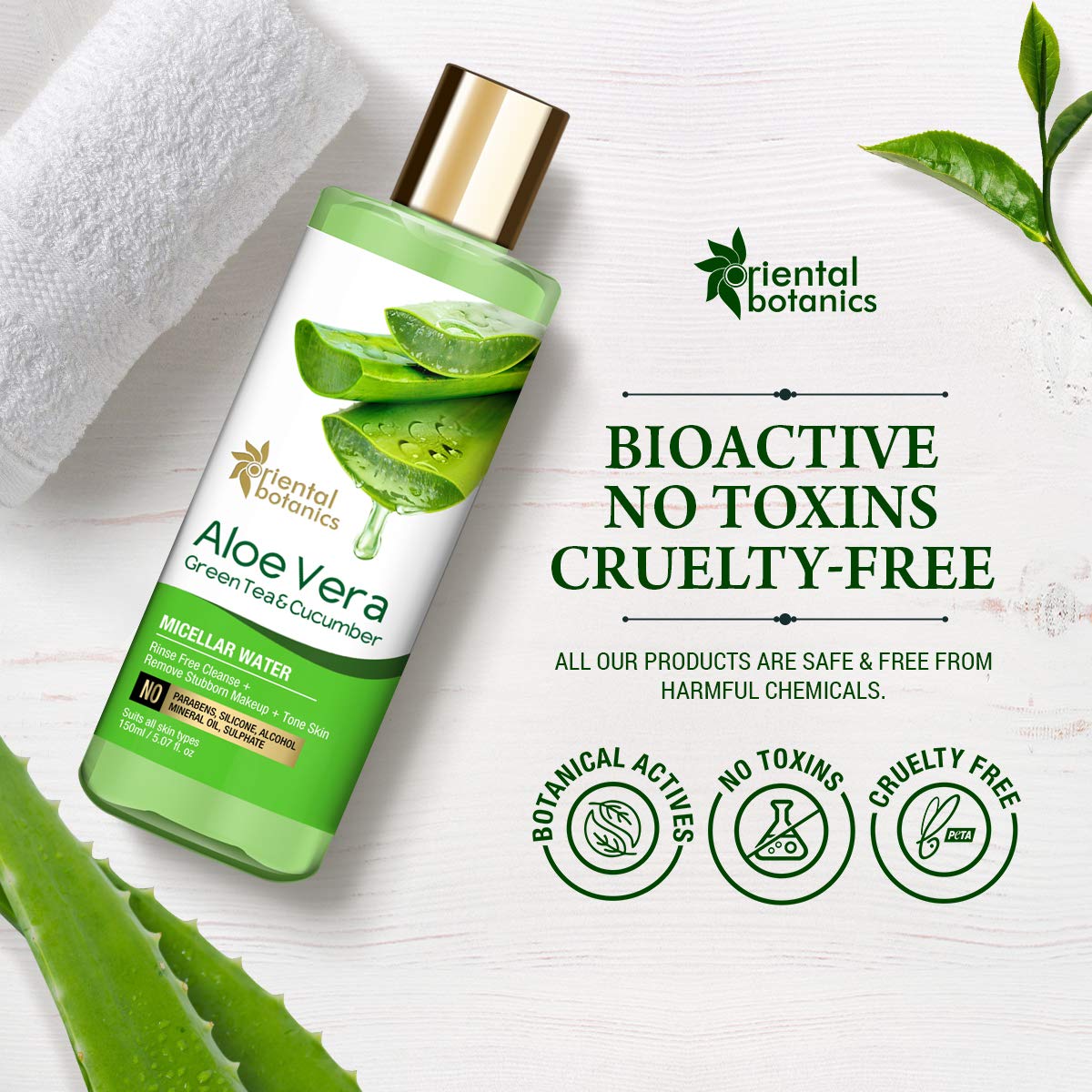 Oriental Botanics Aloe Vera, Green Tea & Cucumber Micellar Water - No Alcohol, Silicone, Sulphate - 150ml