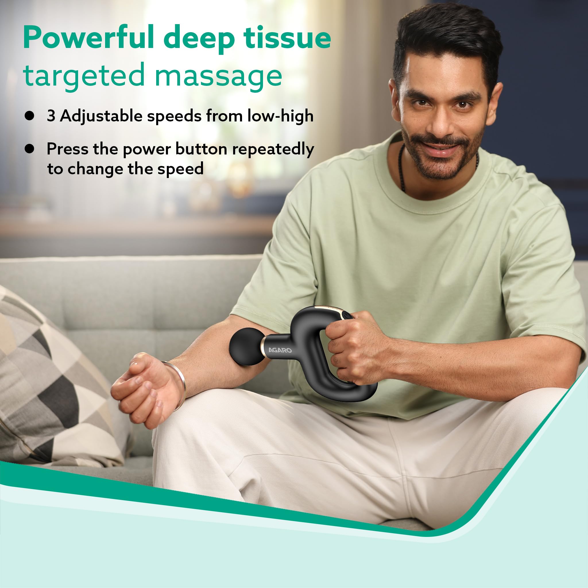 AGARO Icon Handheld Percussion Massage Gun 4800mAh Brushless Motor Rechargeable 6 Interchangeable Massage Heads 3 Speed Settings For Deep Tissue Body Massage Pain Relief With Carry Case (Black)