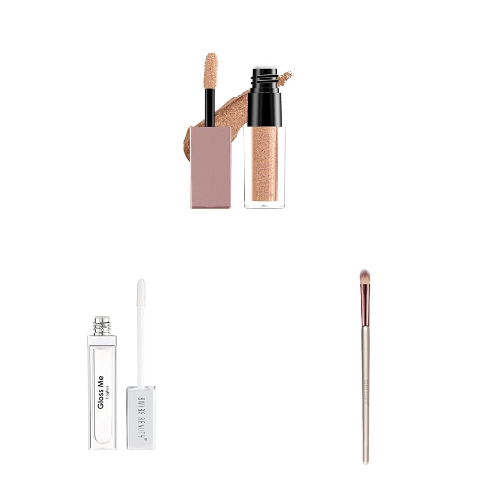 Swiss Beauty Metallic Liquid Eyeshadow | Highly Pigmented Eyeshadow With Radiant Shimmer Finish | Non-Transfer Insta Dry Long Wearing Eyeshadow|Shade-03 3 Ml |Create stunning eye looks that perfectly enhance any style Swiss Beauty Liquid Eyeshadow is ideal for all your glammed up party looks. Daring and adventurous. This metallic eyeshadow effect can lavish your eyes with sparkle and shine brightening and emphasizing your makeup to the next level.Highly Pigmented Eyeshadow | Radiant Shimmer Finish | Long Lasting | Non TransfeSwiss Beauty Gloss Me Lip Gloss | Lightweight | Glossy Finish | Non-sticky |With Jojoba Oil & Glycerine | 8gmIf you want to know how these glosses feel on the lips the clue is in the name. But while its softer than butter its not sticky or gloopy in the bargain. The lightweight formula allows you to wear it alone or on top of a matte lipstick to make it feel less drying. Plus the colossal shade range will make any beauty addict feel like a kid in a cosmetic candy shop.Swiss Beauty Powder Brush Concealer Brush SilverSwiss Beauty combines high-tech materials with innovative design brush to make creating a pixel-perfect look easier than ever synthetic bristles are ultra-plush and smoother than the hair you'll find in other brushes. It creates flawless base enhanced look and the perfect finish like a pro. Each brush head is perfect shape allowing for precise application from dense coverage to a soft delicate finish. The collection is suitable for a wide range of products and every makeup need from powders creams and liquids to mineral makeup highlighter and shimmer. Brush names on the handles make for easy reference when creating your favourite look. F03: Concealer Brush: Cover your spots scars discoloration and more with this Swiss Beauty Concealer Brush using all of your favorite concealer formulas.