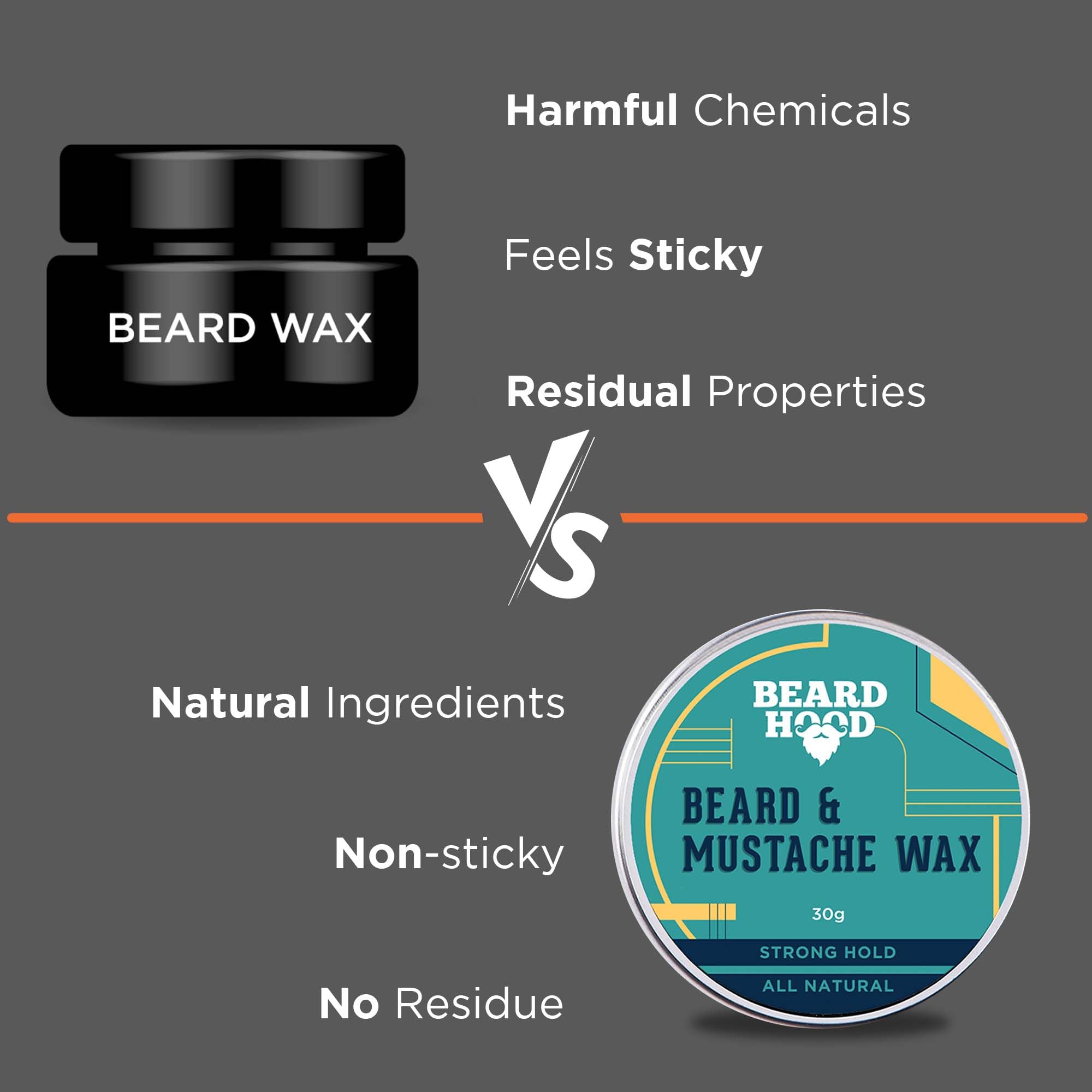 BEARDHOOD 100% Natural Mustache And Beard Wax For Strong Hold | Natural Musky Scent