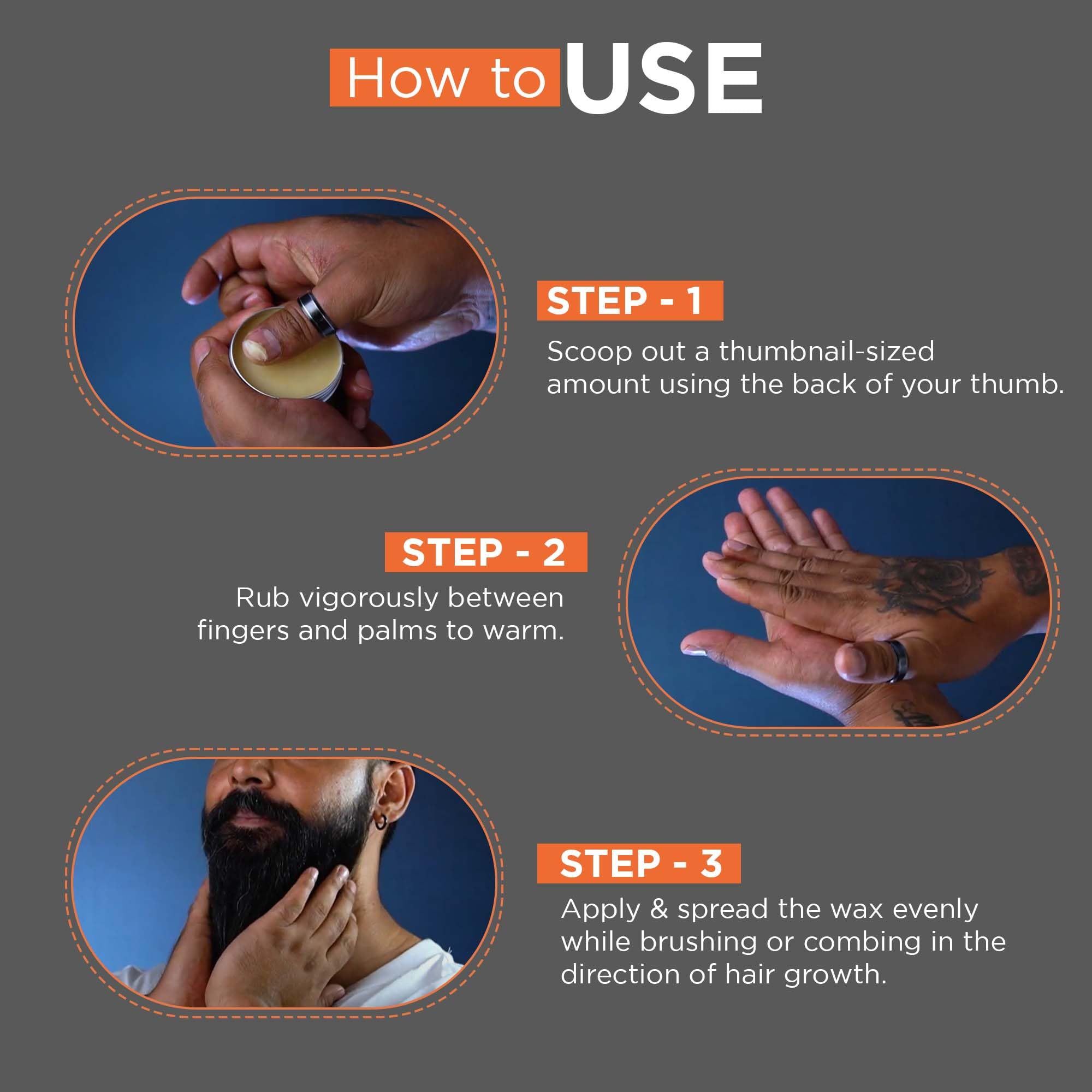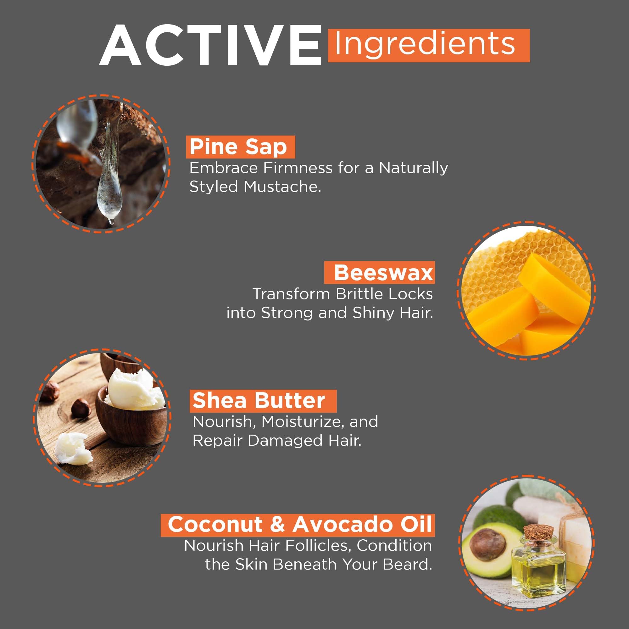 Musky scent that keeps your fresh: The natural ingredients of this mustache and beard wax for men gives a musky understated scent which feels like the wholesome goodness that your moustache needs; Quick and super styled look: Infused with with nourishing