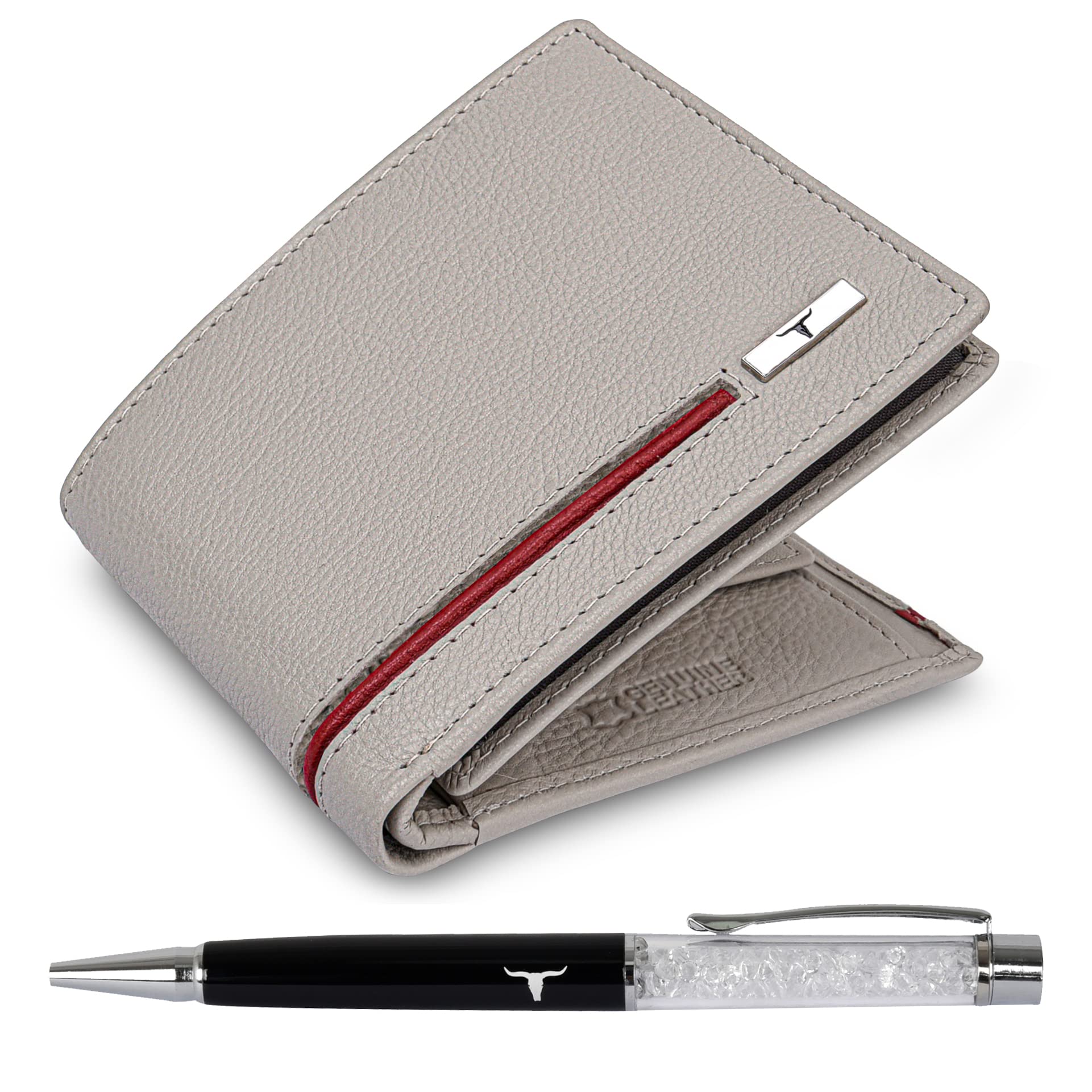 URBAN FOREST Stag Sand/Red Leather Wallet & Pen Combo Gift Set for Men