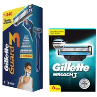 Gillette Guard 3 Single Razor with 8 Blades Pack & Mach 3 Shaving Blades- Pack of 6 (Cartridges)
