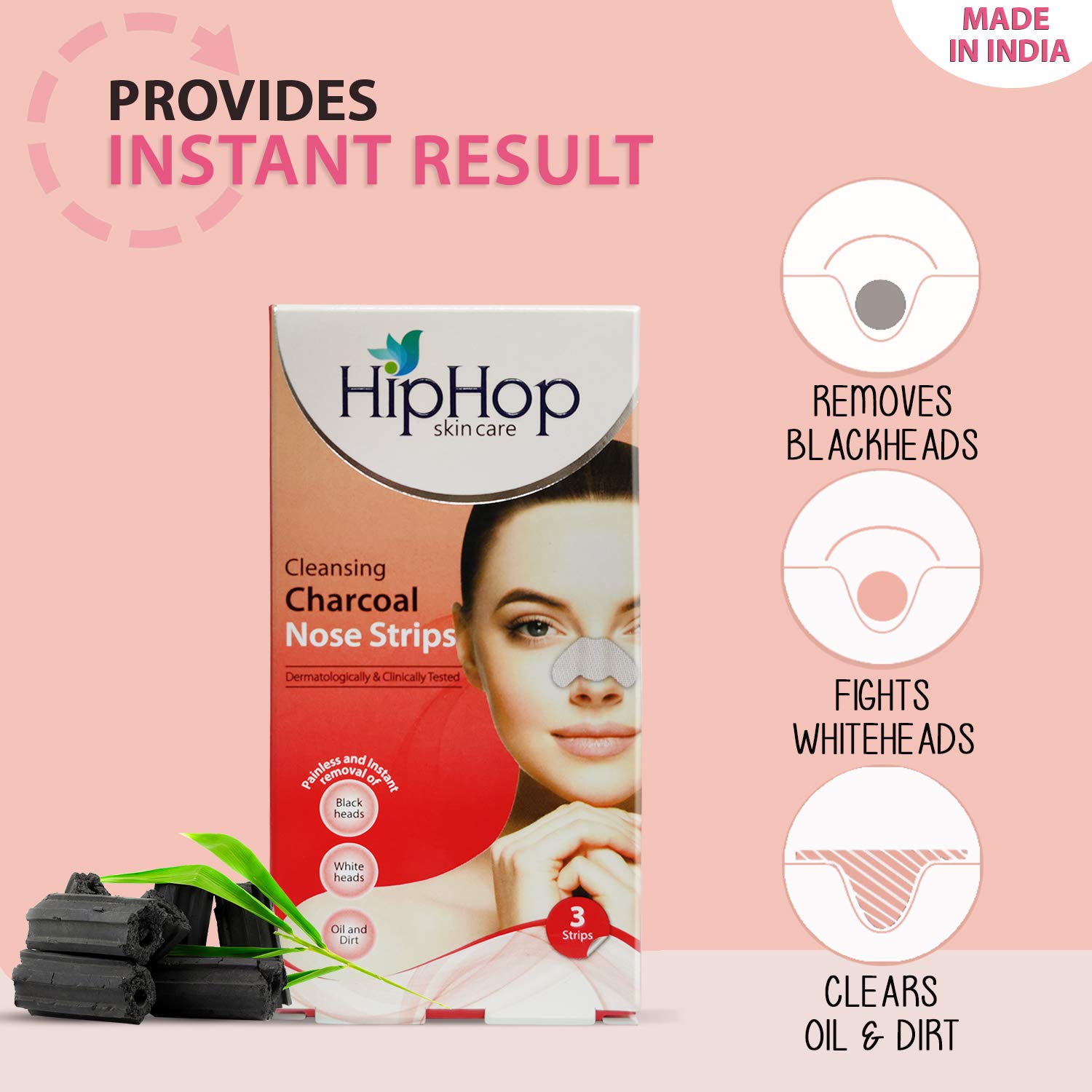 HipHop Skincare Cleansing Charcoal Nose Strips for Women - Blackhead Remover & Pore Cleanser (3 Strips)