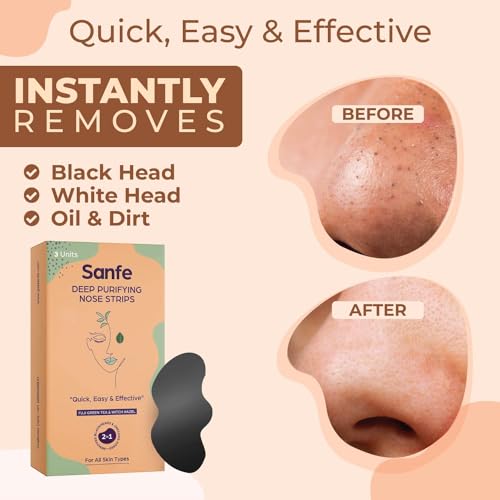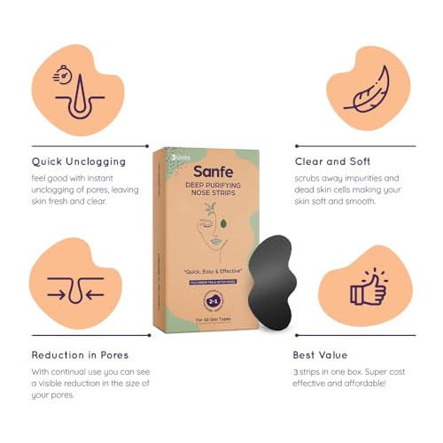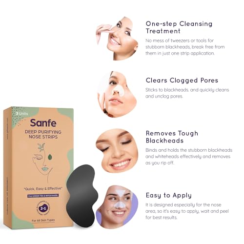 HomeBeautySkin ToolsBlackhead RemoverSanfe Deep Purifying Nose Strips for Women - Pack of 3 with Fuji Green Tea & Witch Hazel extracts | Removes Whiteheads | Blackheads and cleanses pores | Use on Nose