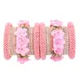 LAC BANGLES welcomes you to the world of designer fashion and imitation jewelry. We are presenting you with an eye-catching wonderful latest design chooda set of 34 bangles by the artisans of Rajasthan India. In an endeavor to delightfully surprise its customers. This bangle set has 17 bangles in one hand a total of 2 golden tone metal kada studded with look like moti of plastic 1 silk thread Kada studded with flowers and 14 metal glittery bangles. This unique Indian handicraft is an all-occasion gift to add grace to any outfit. Pair it with any traditional ethnic designer casual or party wear & create your own style statement.