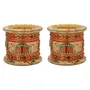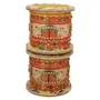 LAC BANGLES presents you an eye-catching wonderful latest design bangles by the artisans of Rajasthan India. This bangle set has 9 bangles in one hand a total of 18 seep / plastic bangles which comprises 4 designer bangadi bangles stud with white & golden color stones 8 bangles with golden stones 4 kada with diamond shape design 2 dulhan palki design big kadas. This unique Indian handicraft is an all-occasion gift to add grace to any outfit. Pair it with any traditional ethnic designer casual or any party wear & create your own style statement.