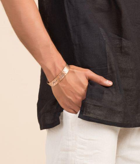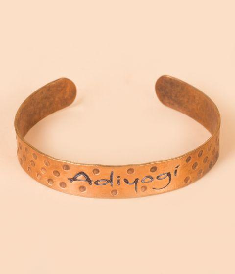 The hammered copper cuff is easy to wear and comes etched with 'Adiyogi' in the original typeface.