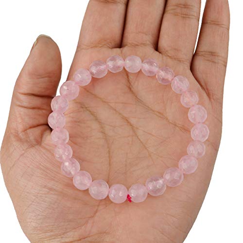 Natural Rose Quartz Bracelet Crystal Stone 8mm Faceted Bead Bracelet for Reiki Healing and Crystal H