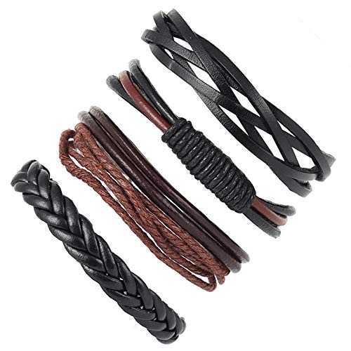 Multi PCS Combo Leather Wraps Casual Latest Trend Bracelets for Men and Boys (4pcs Unisex Wrap Bracelet)
