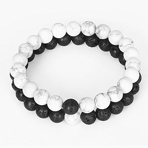 Black and White Crystal 8 mm Lava and Howlite Stone Yoga Couple Bracelet 2-Pieces for Men and Women