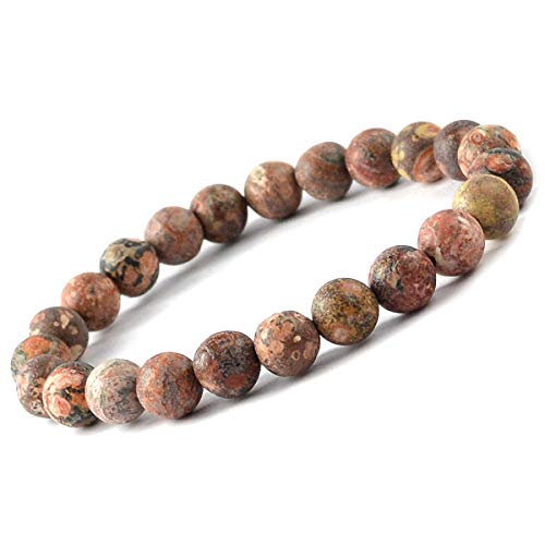 • Stretchable Elastic Handmade Natural Crystal Stone Leopard Jasper Bracelet