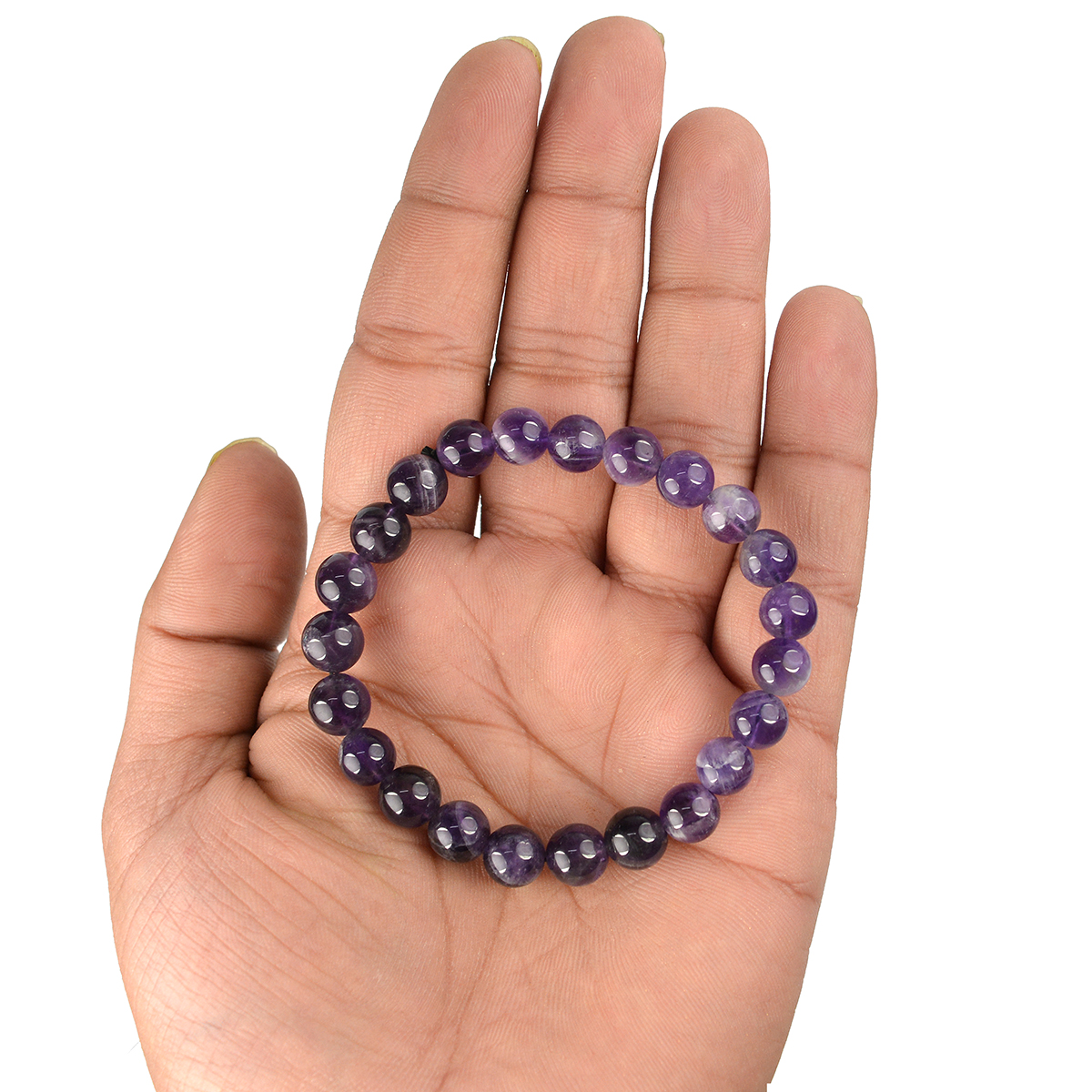 Stretchable Elastic Handmade Natural Crystal Stone Bracelet | Diameter : 2.5 Inch. | Stone Size 8 mm | Shape - Round. Charged By Reiki Grand Master & Vastu Expert