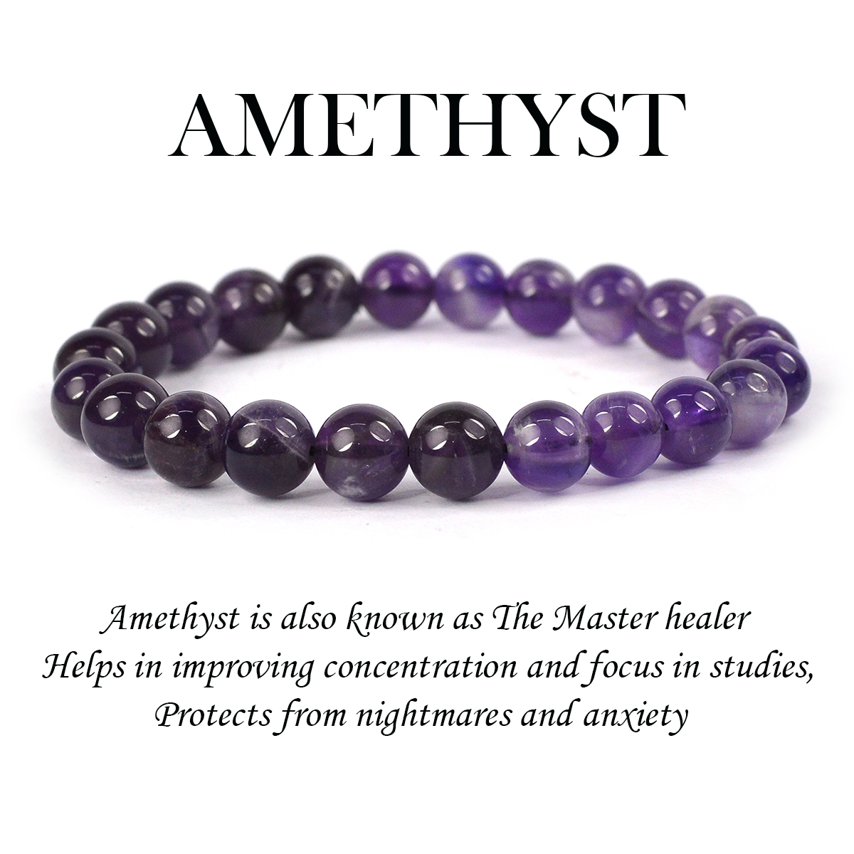 Reiki Crystal Products Natural Amethyst Bracelet Crystal Stone 8mm Round Bead Bracelet for Reiki Healing and Crystal Healing Stones