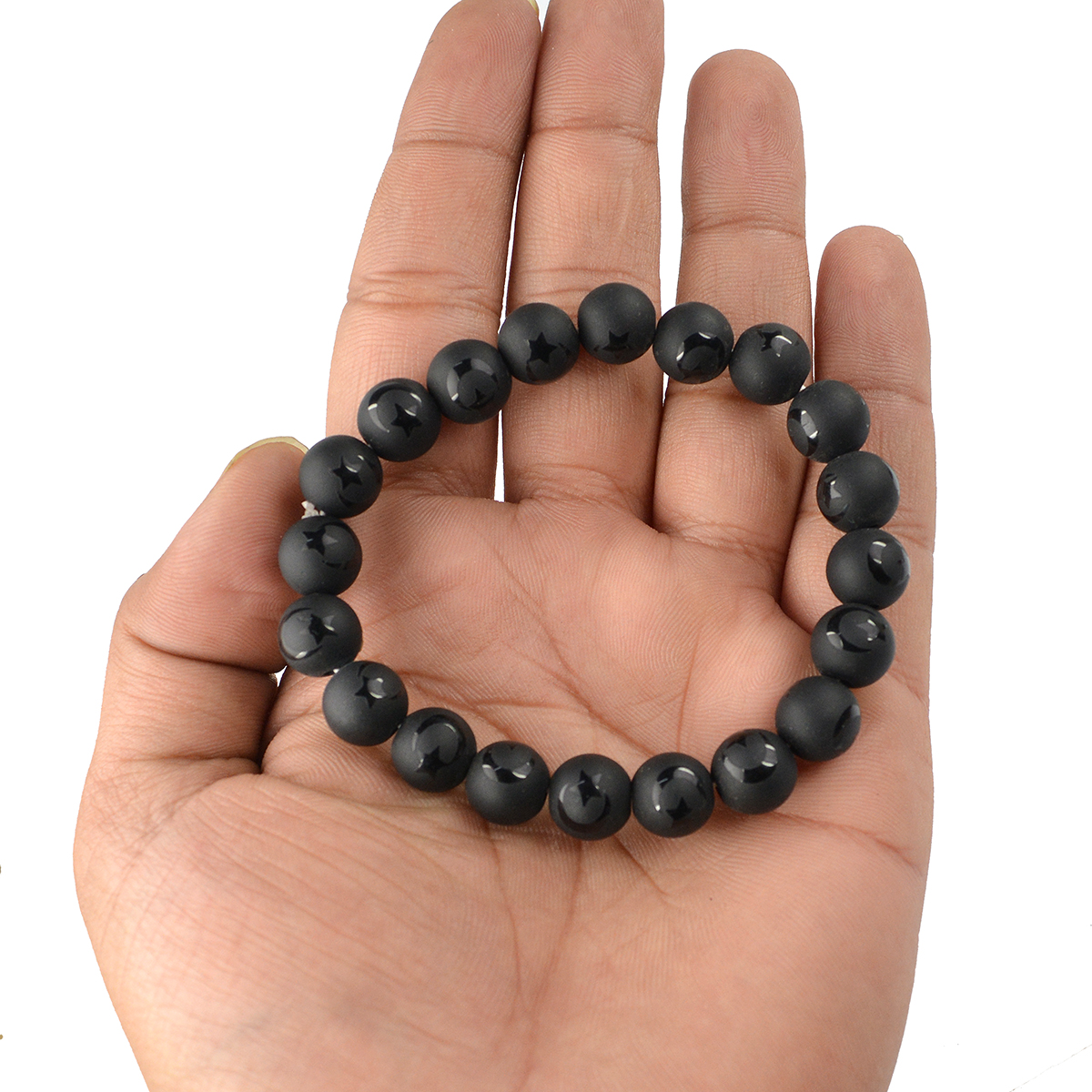 Stretchable Elastic Handmade Natural Crystal Stone Black Onyx Self Bracelet