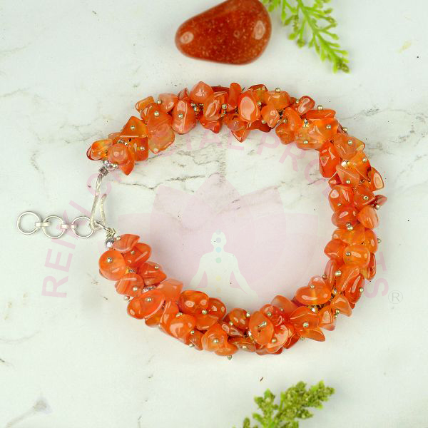 Reiki Crystal Products Natural Carnelian Bracelet Crystal Stone Chip Bead Bracelet for Reiki Healing and Crystal Healing Stones