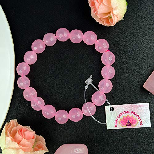 HomeFashionBraceletReiki Crystal Products Natural Certified Rose Quartz Bracelet Faceted Beads 10 mm Crystal Stone Bracelet for Reiki Healing and Crystal Healing Stones (Color : k)