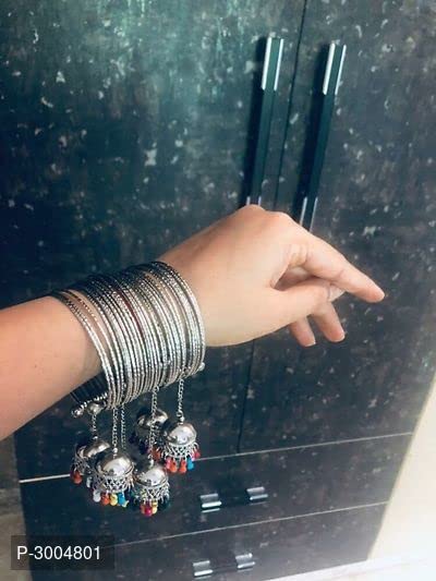 Yellow Chimes Women's Traditional Oxidized Jhumki Latkan Tassels Charms Stylish Latest Trend Bangle Kadaa Bracelet Silver Adjustable