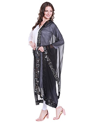Add a touch of elegance to your wardrobe with this exquisite piece of pretty chiffon Dupatta. Swathed with an elegant plastic mirror work border this stunner is a must in your collection . Drape it around a solid or printed kurta to give a touch of charismatic splendour to your ethnic diva look!.