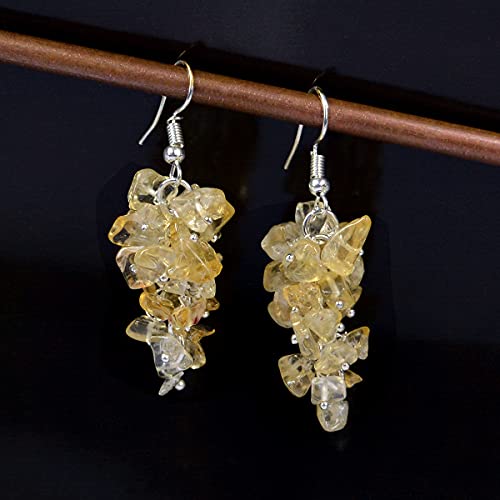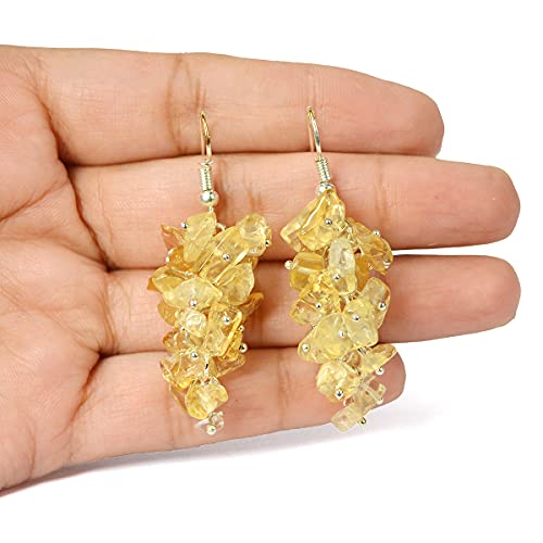 Citrine Earrings Natural Chip Beads Earrings for Women, Girls (Yellow)