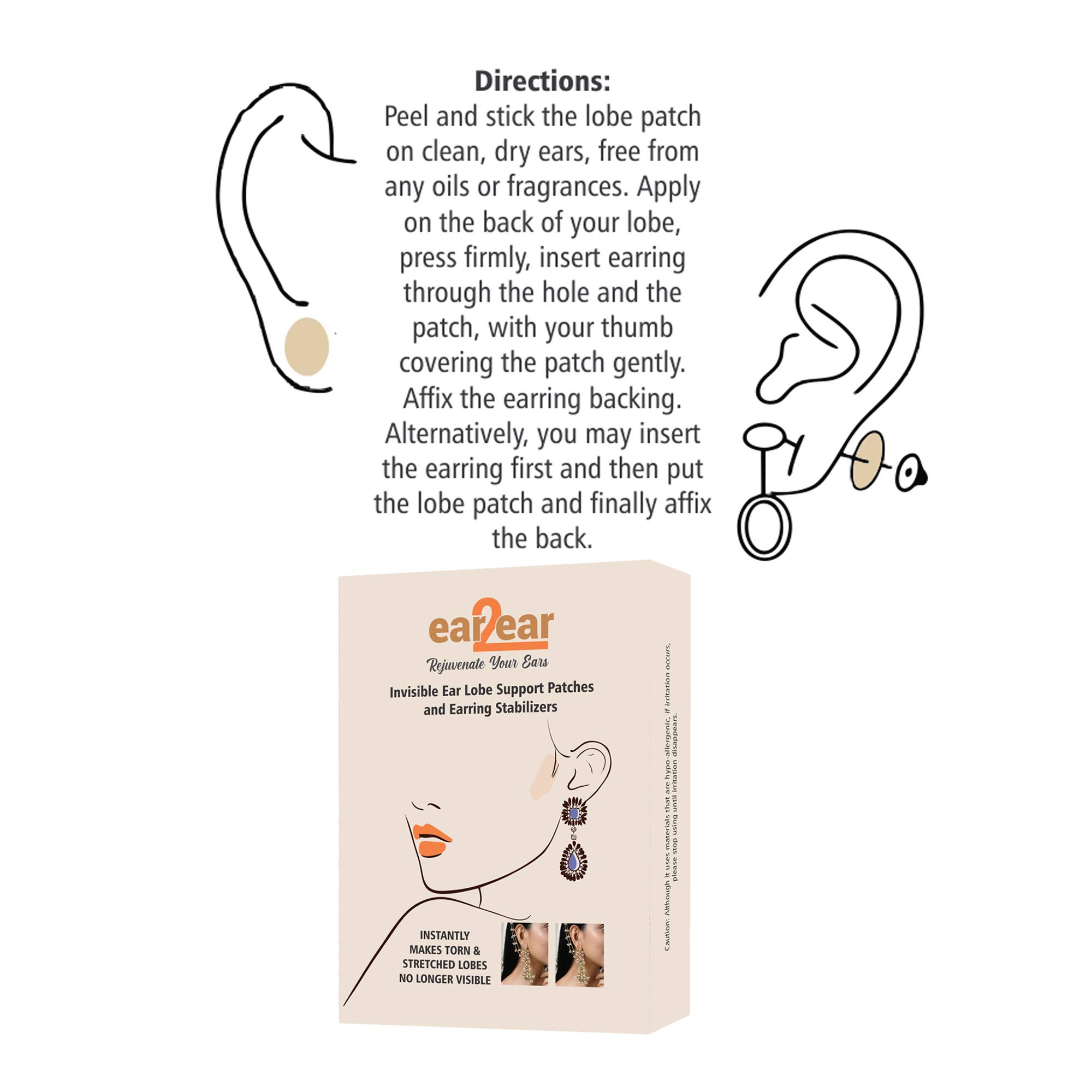 ear2ear - Invisible Ear Lobe Support Patches for Women - Makes Wearing Earrings for Women more comfortable Ear Care Solution for Pierced Ears - Beauty Accessories - Pack of 30 Earring Stickers