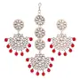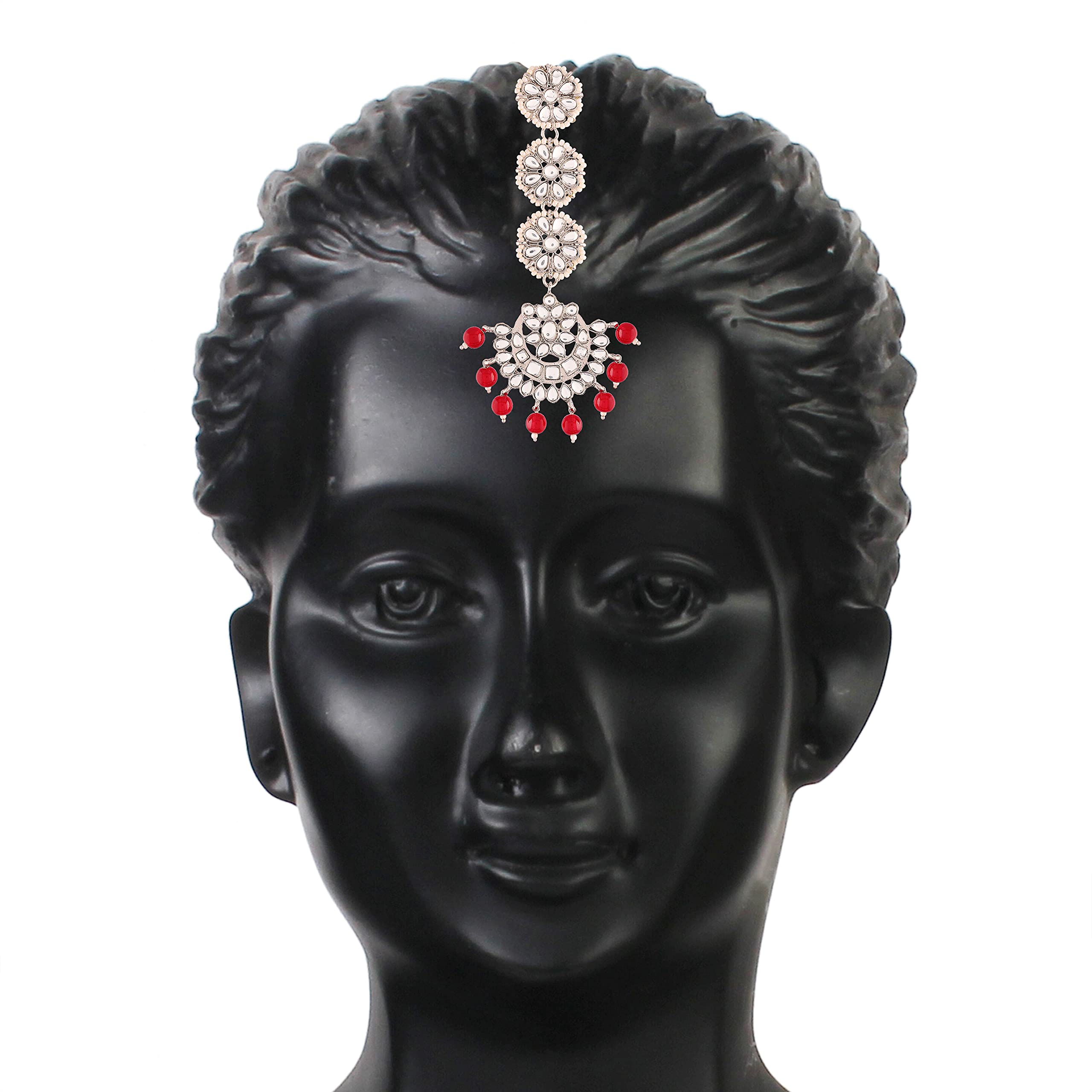 I Jewels Rhodium Plated Indian Wedding Bollywood Kundan & Faux Pearl Chandbali Earrings with Maang Tikka Set (TE2911Z)
