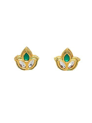 Ruby Raang Women's Mixed Metal Artificial Kundan Earrings - Traditional Jewellery Set for Women (Green)
