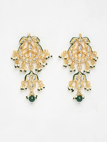Ruby Raang Women's Mixed Metal Artificial Kundan Earrings - Traditional Jewellery Set for Women (Green)