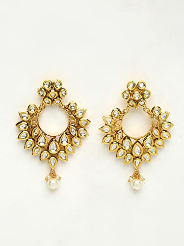 Ruby Raang Women's Mixed Metal Artificial Kundan Earrings - Traditional Jewellery Set for Women (White)
