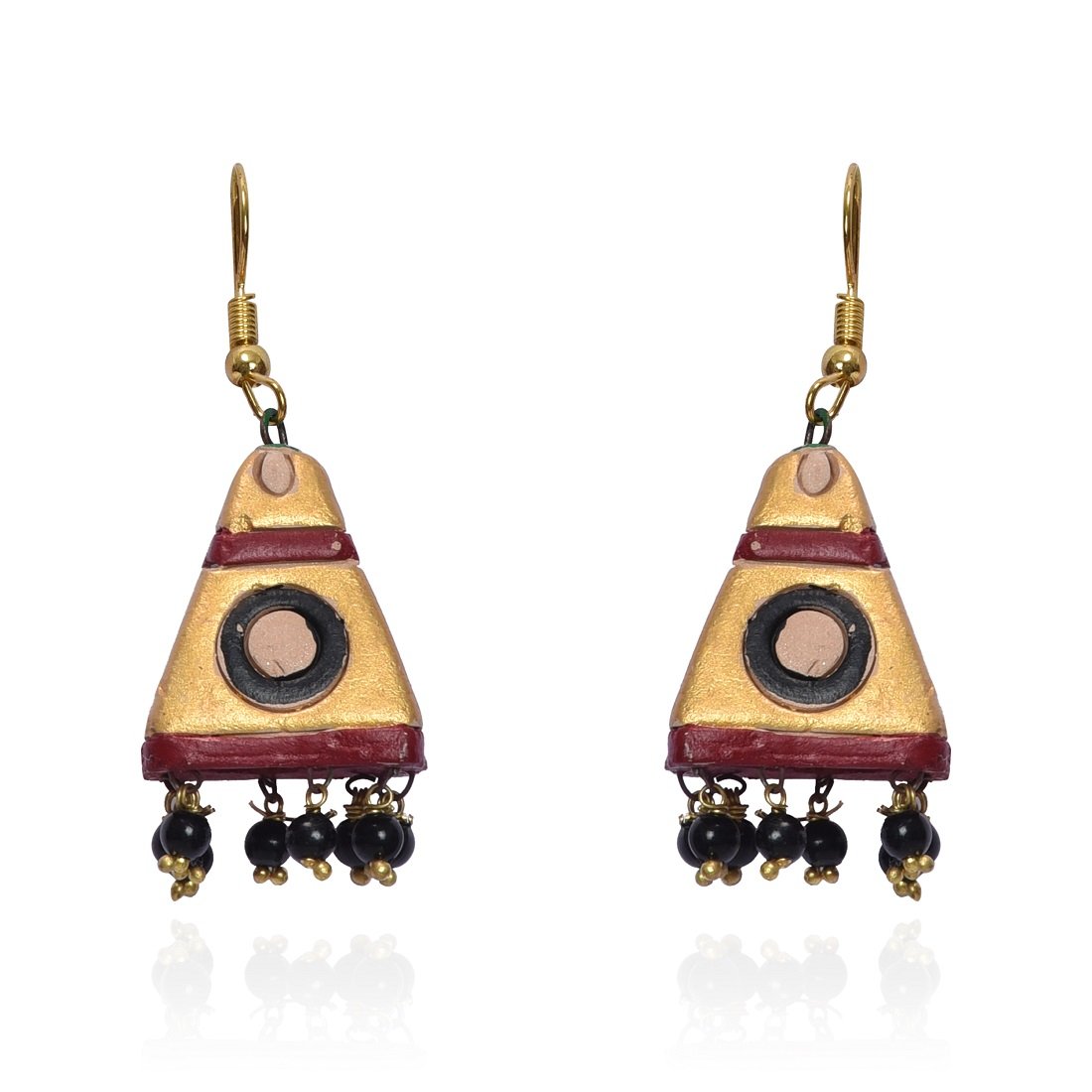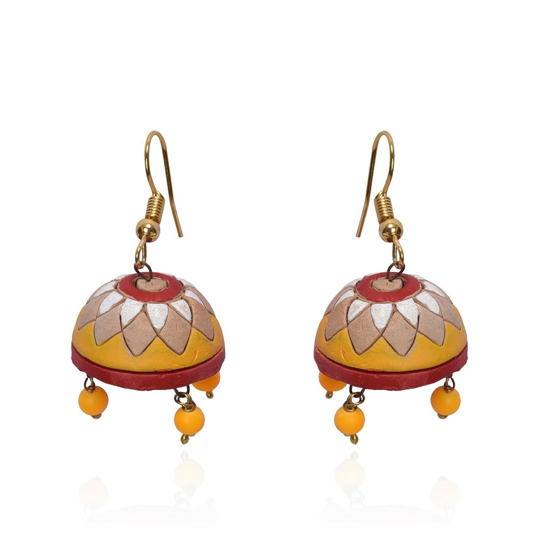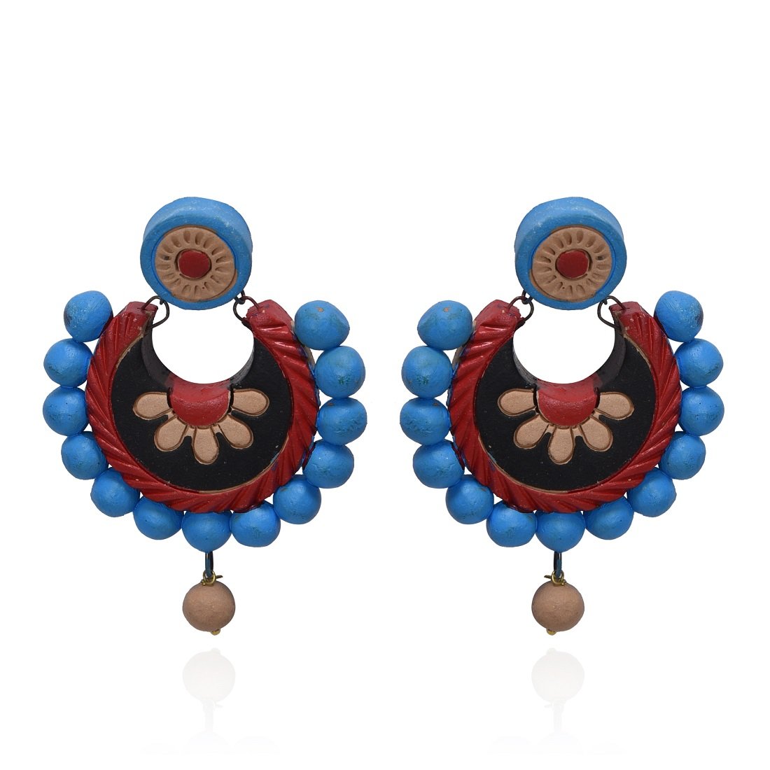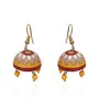 The products in display is made from terracotta material and is finished in an attractive color. Furthermore this product features a Jhumka shape and a design that renders it with the versatility to be worn as a festive occasion wear